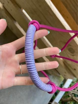 Licol rose avec muserolle violet pastel.