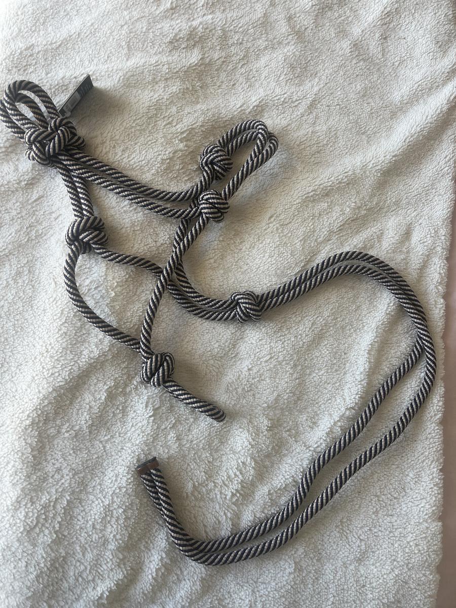 Bonjour, je vend un licol éthologique taille poney, (peu aller à un shetland car nœuds neufs donc pas serrés)