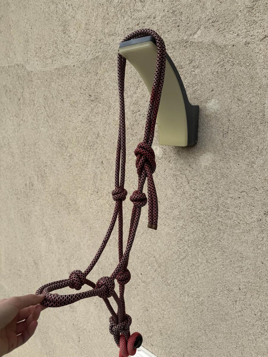 Vends licol éthologique + longe rouge, taille cheval. Il n'a jamais été utilisé mais la couleur est un peu passé.