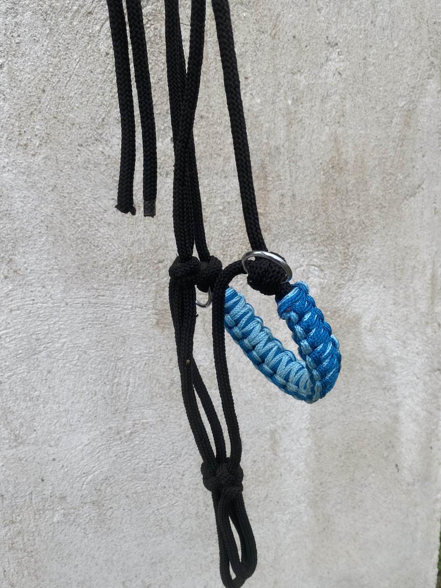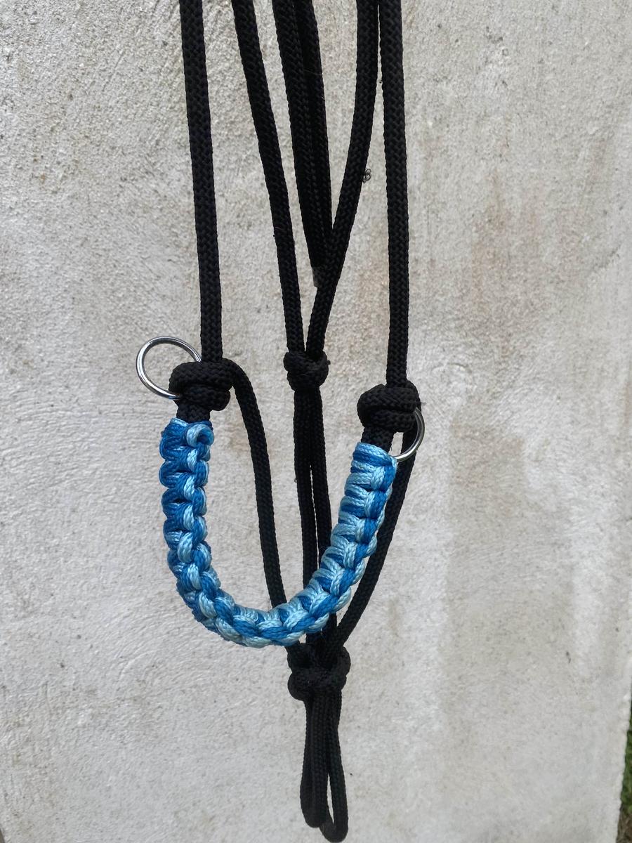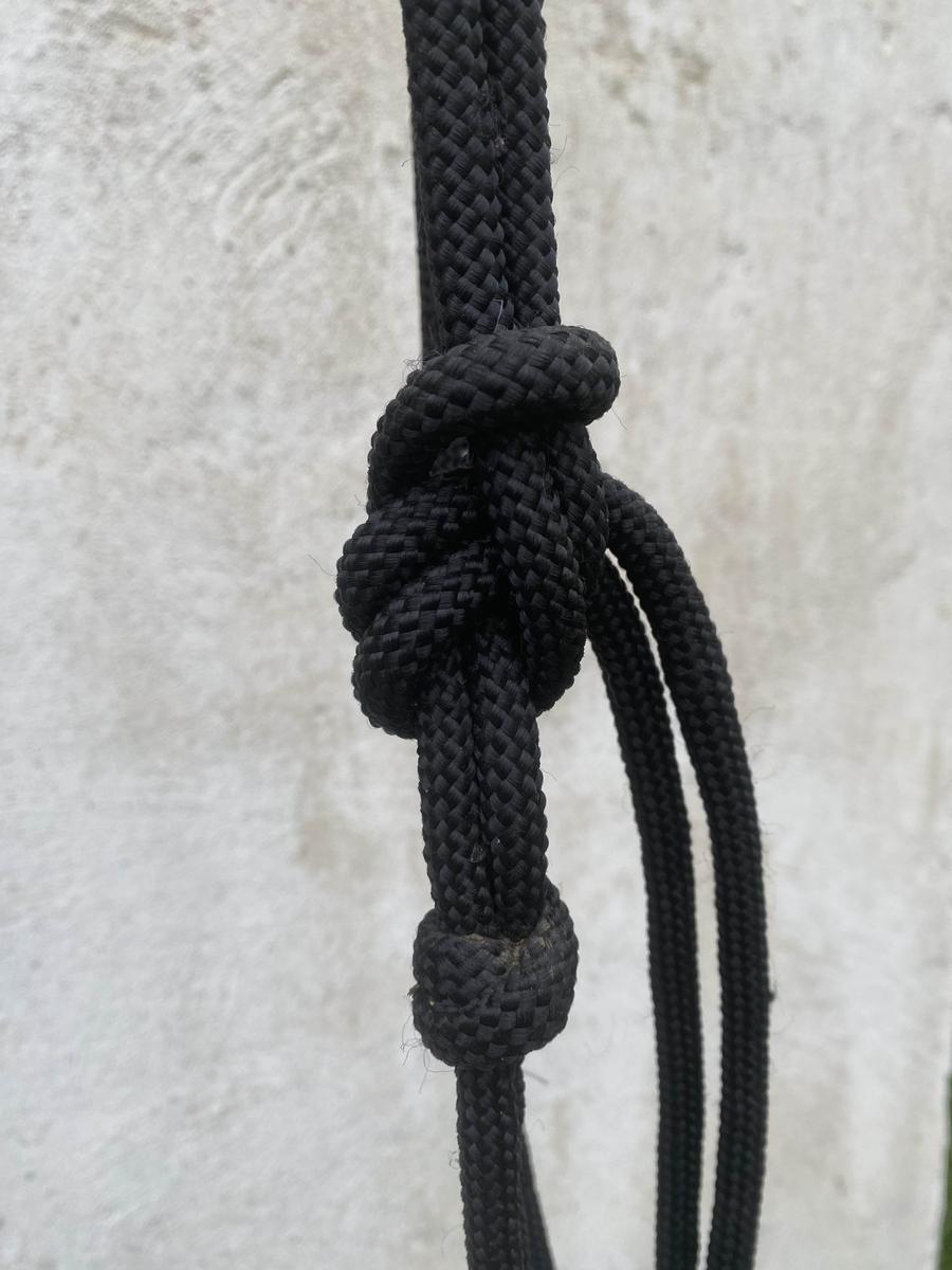 licol en corde en superbe état , taille vraiment grand et a une corde épaisse avec des anneaux de chaques côtés pour les rênes.