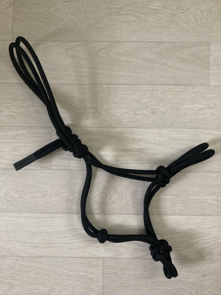 Licol en corde / à noeuds, noir, taille cob, très bon état.