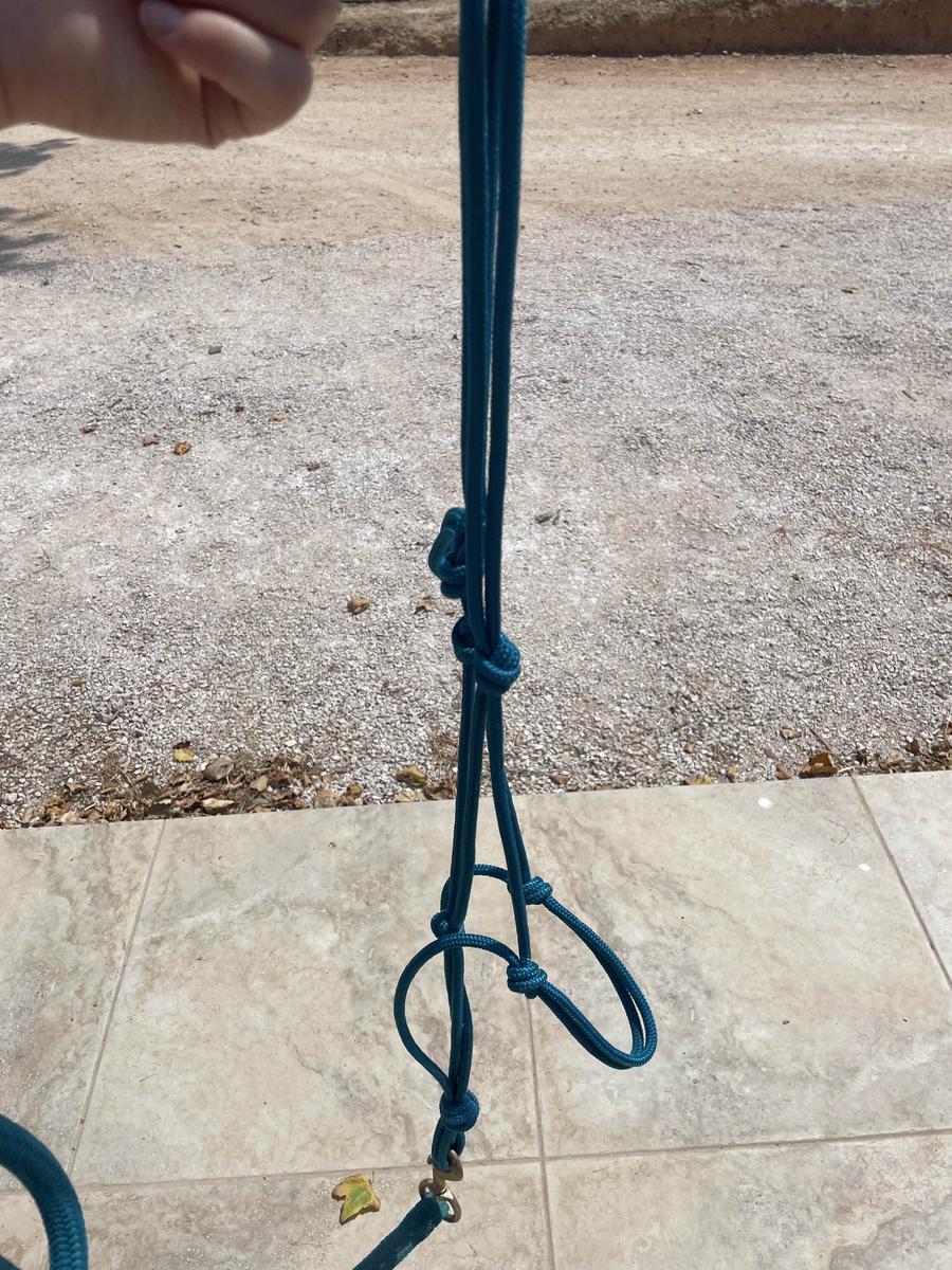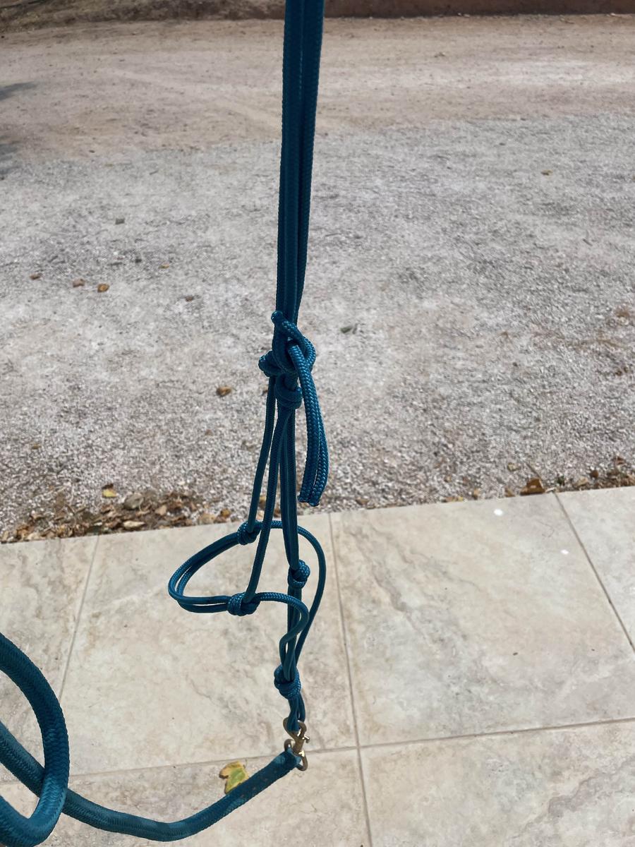 licol porté quelques fois, traces d’usure sur le mousqueton mais sinon excellent état !