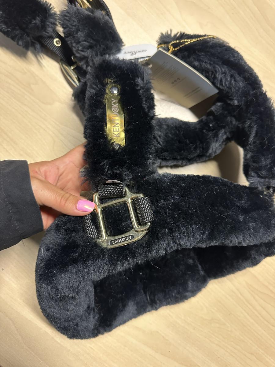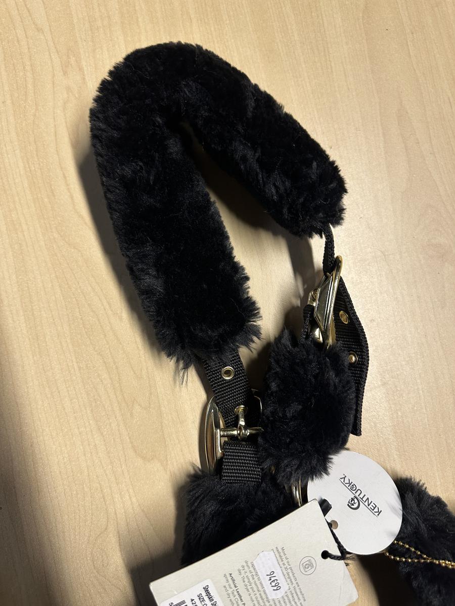 Cousu à même sur le nylon, le mouton synthétique recouvre chaque centimètre et boucles du licol.