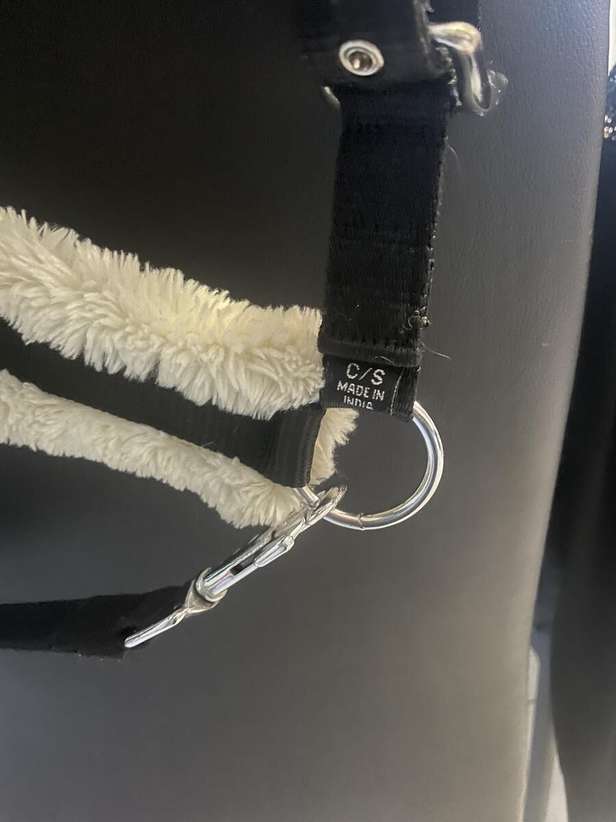 Licol mouton noir et blanc equitheme, taille cob, excellent état n’a servit qu’une dizaine de fois