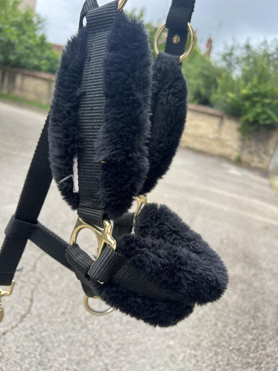 Licol en mouton noir. Jamais porté en excellent état.