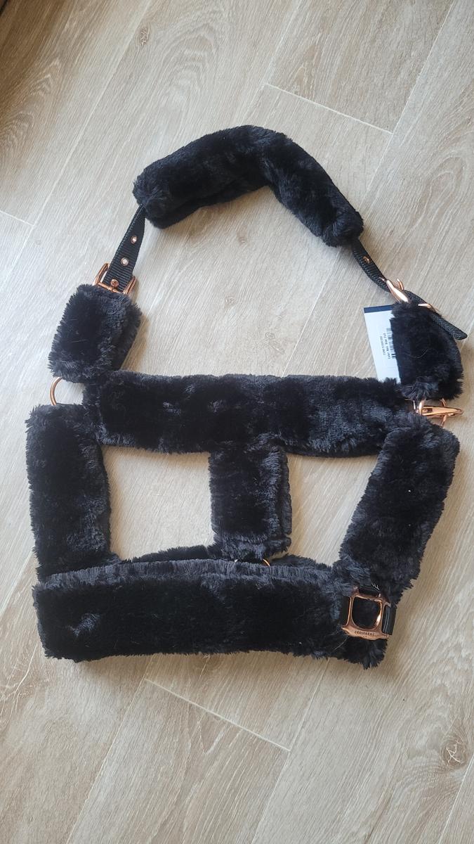 Vends licol moumoute Equithème noir, bouclerie rose gold.