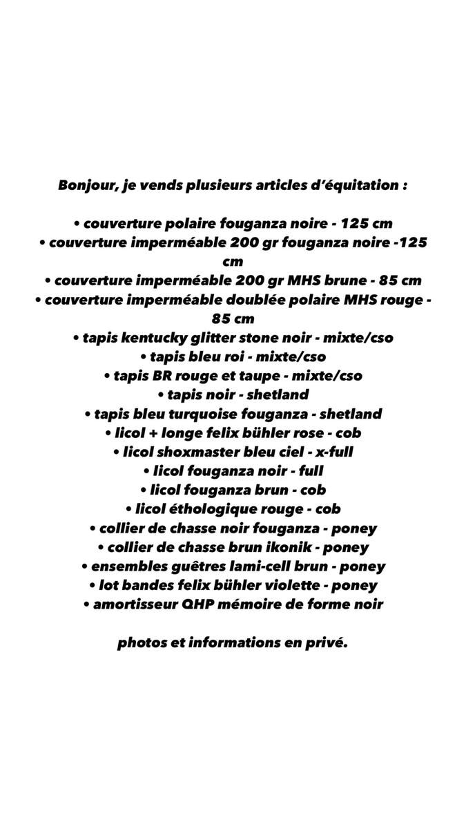 Bonjour, je vends plusieurs articles d’équitation :