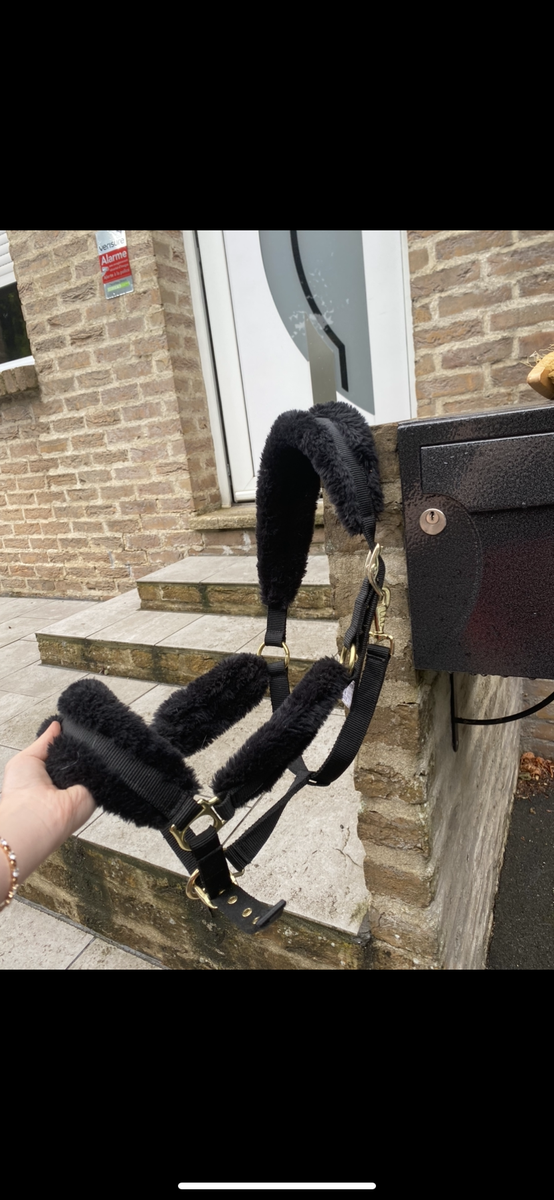 Bonjour je vend ce licol noir décathlon neuf sans étiquette jamais porter taille cheval acheter 20€ à vendre 10€ sans longe !
