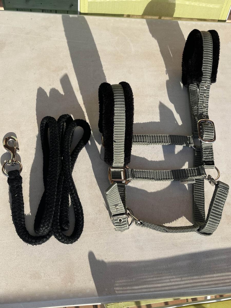 Licol kaki en moumoute noire de marque Showmaster taille cheval