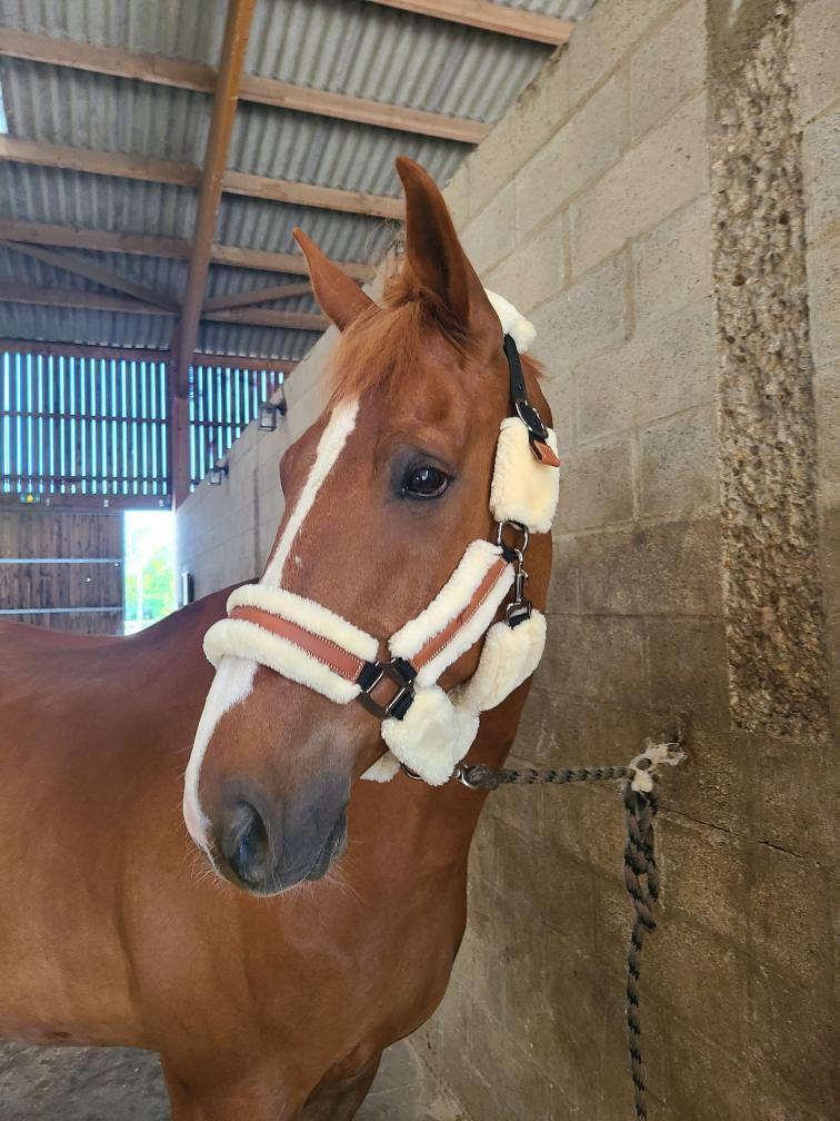 Licol moumoute utiliser très peu de fois, très bon état juste de la poussière sur la moumoute mais lavable.