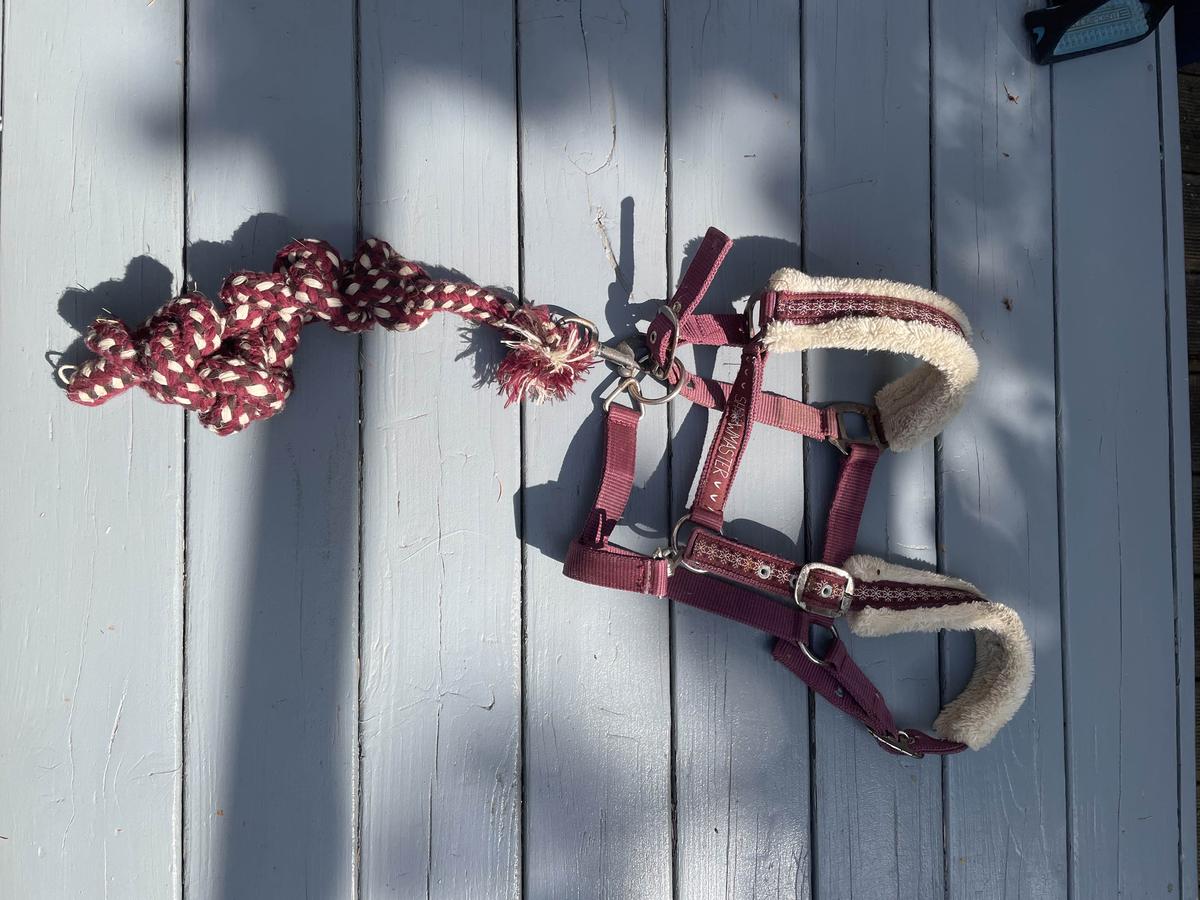 licol et longe en très bon état malgré un petit peu d’usure au niveau de la longe mais ça ne gêne en rien l’utilisation