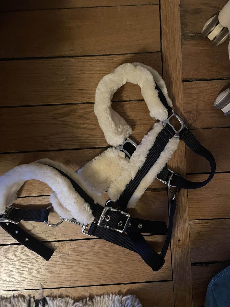 Licol noir avec de la moumoute blanche. Taille cheval. Porté que quelques fois, état comme neuf.