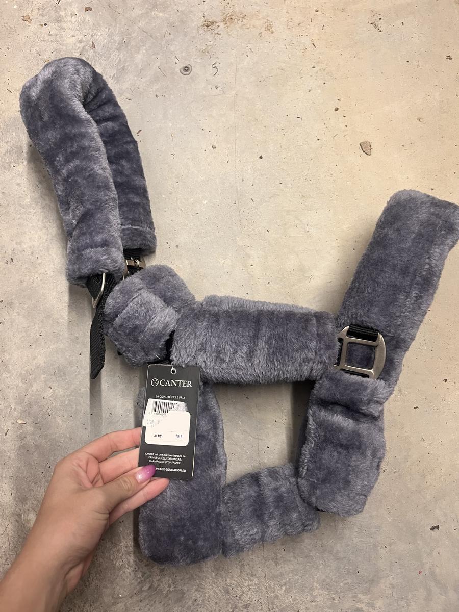 Je vends un licol Caire en mouton gris taille cheval. Il est neuf avec étiquette, je viens de le gagner en concours le week-end dernier.