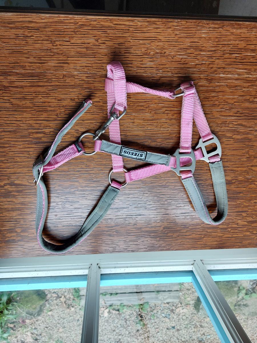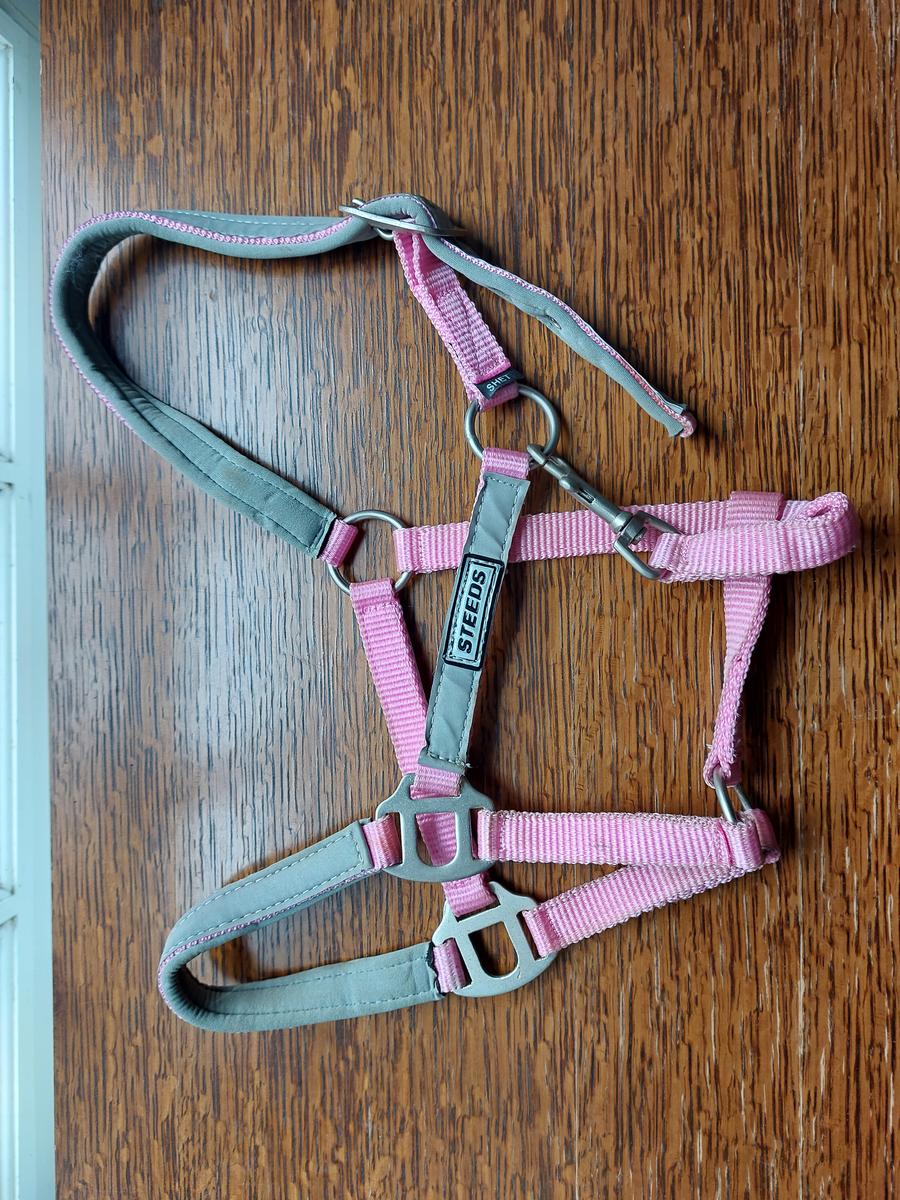 Licol poney rose et réfléchissant. Vendu shetland mais taille grand.