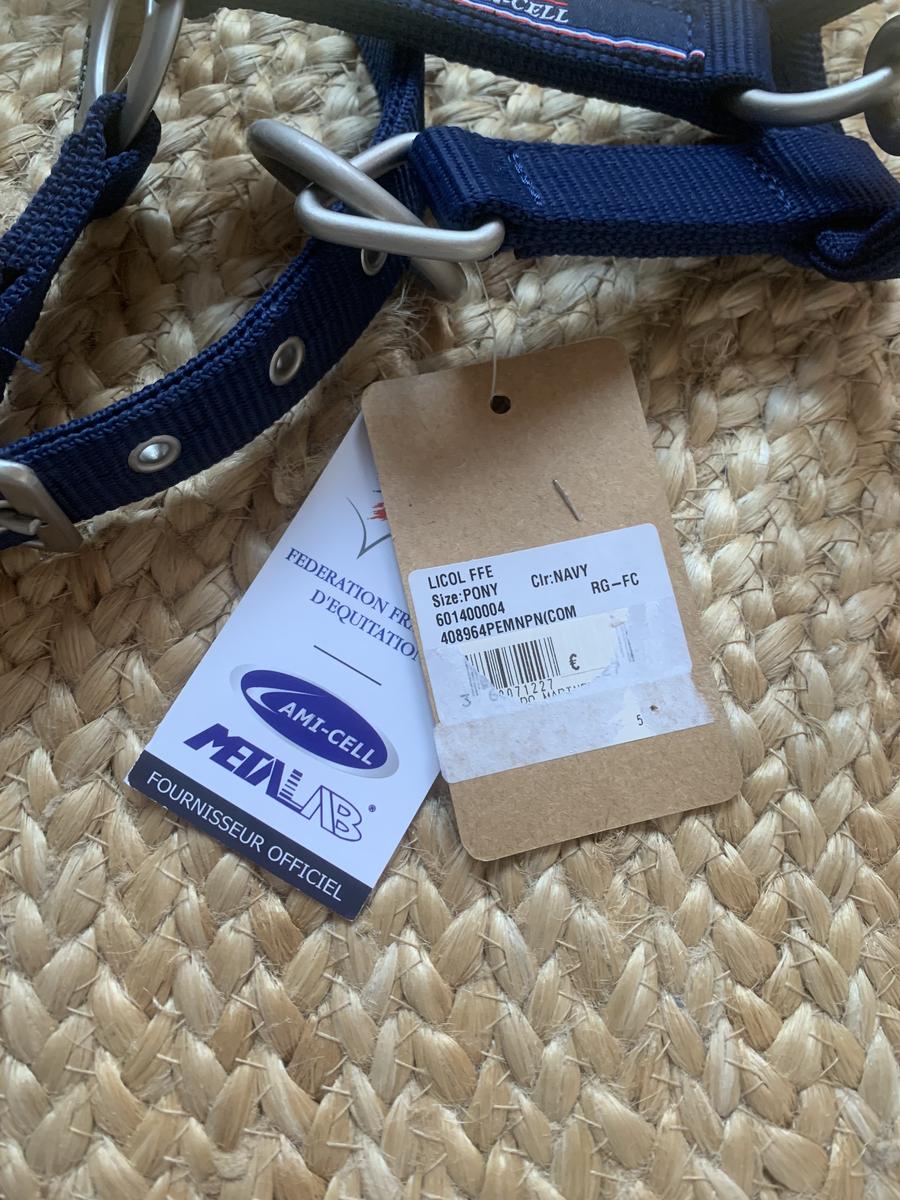bonjour, je vends ce licol bleu marine ffe/lamicell encore neuf avec l’étiquette