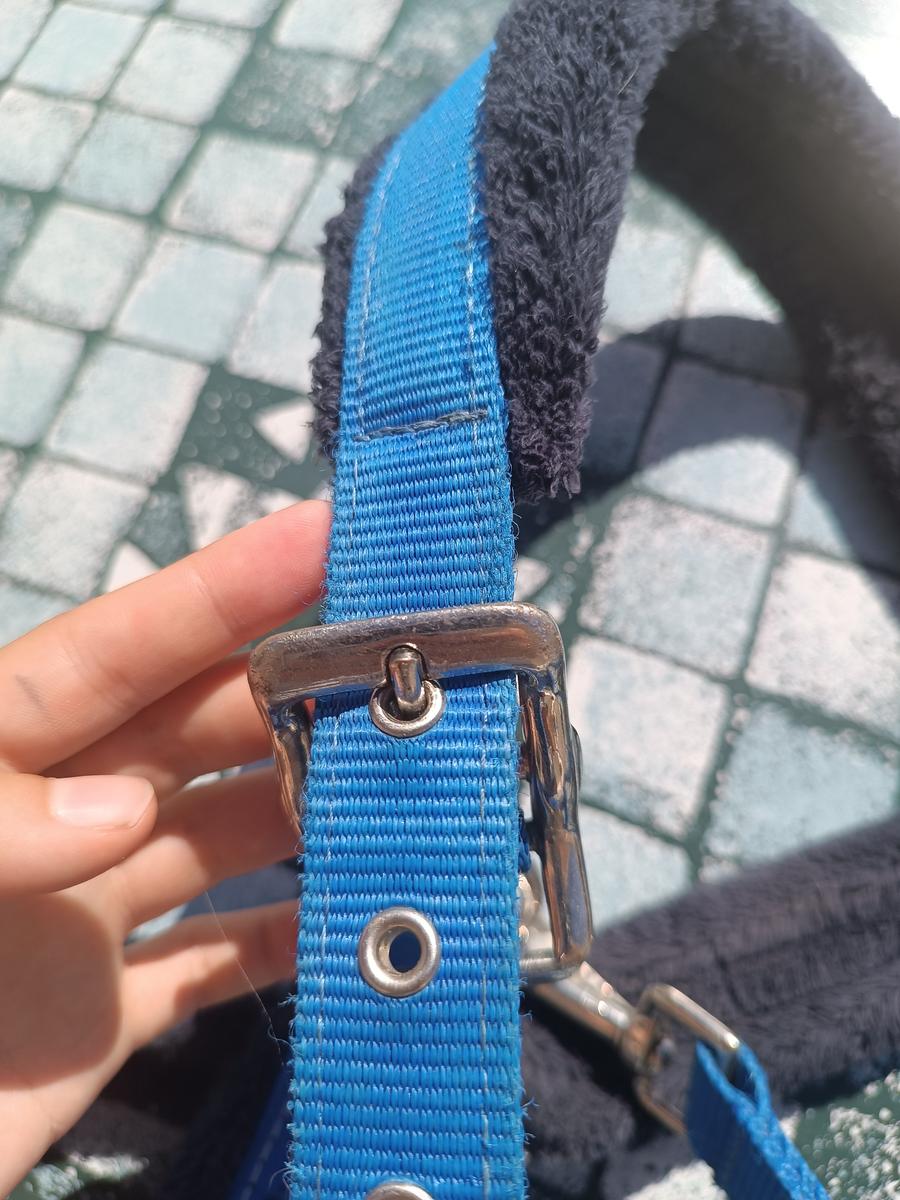 Licol+longe Fouganza bleu roi. Mis très rarement donc quelques poils visibles mais reste très propre et en bonne état