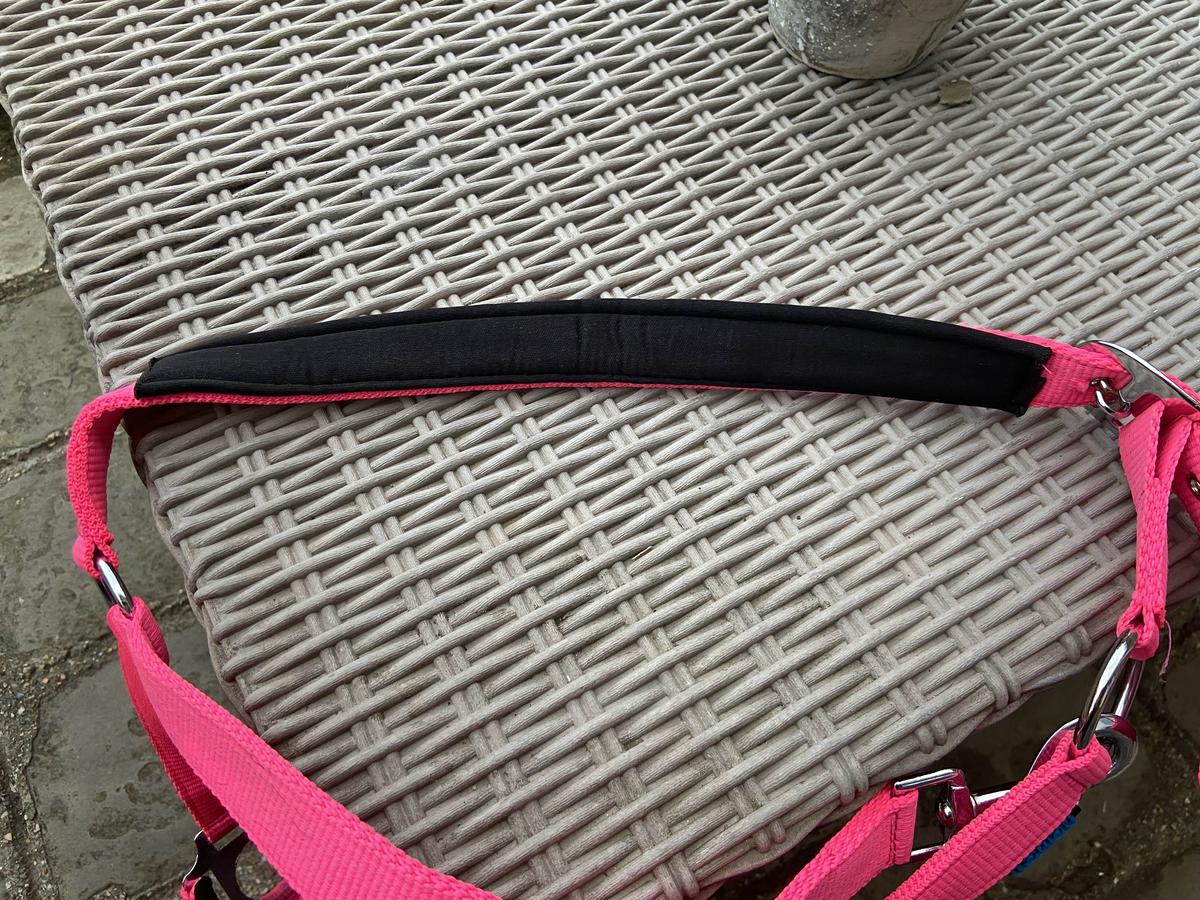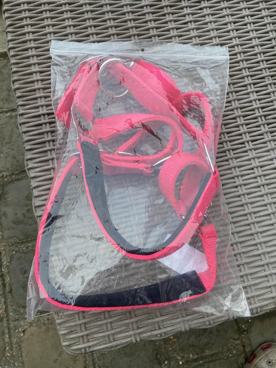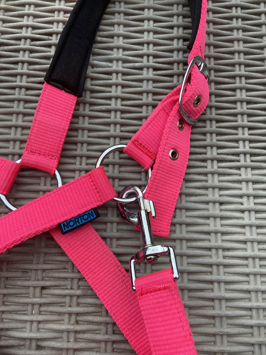 Porté une heure mais malheureusement trop grand. Boucles argentées. Renfort confortable au niveau de la muserolle. Etat impeccable. Taille poney.