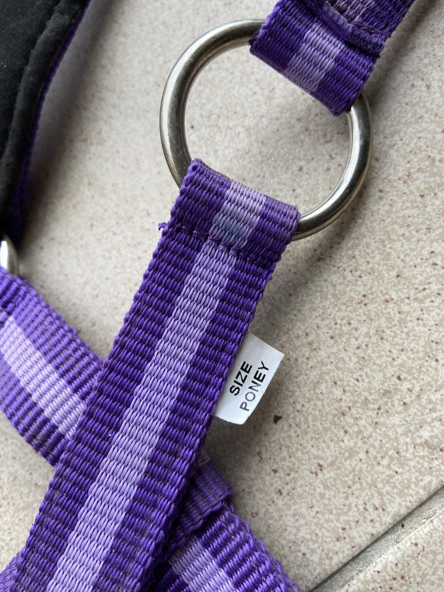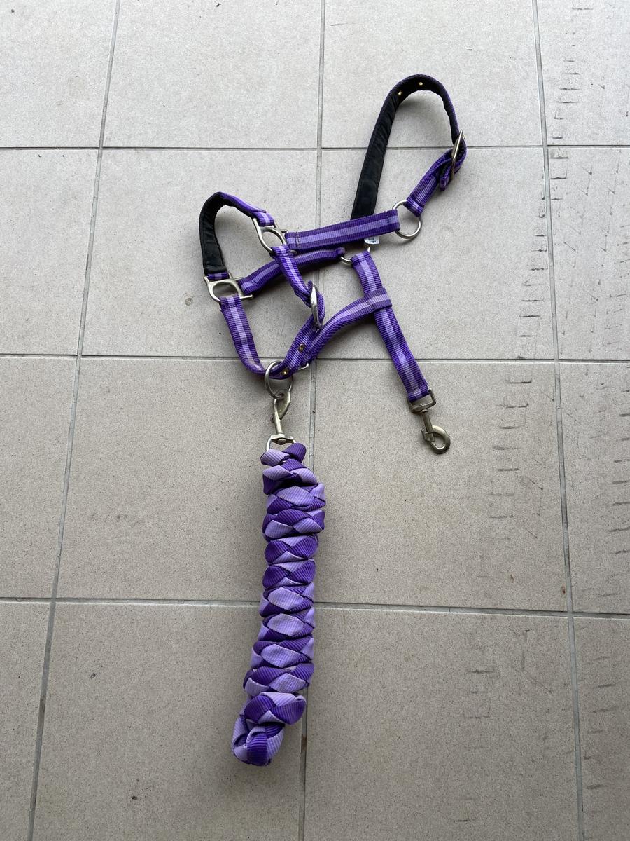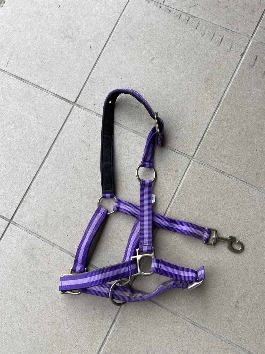 Licol comme neuf en taille poney, porté 2 fois. Vendu avec longe, neuve.