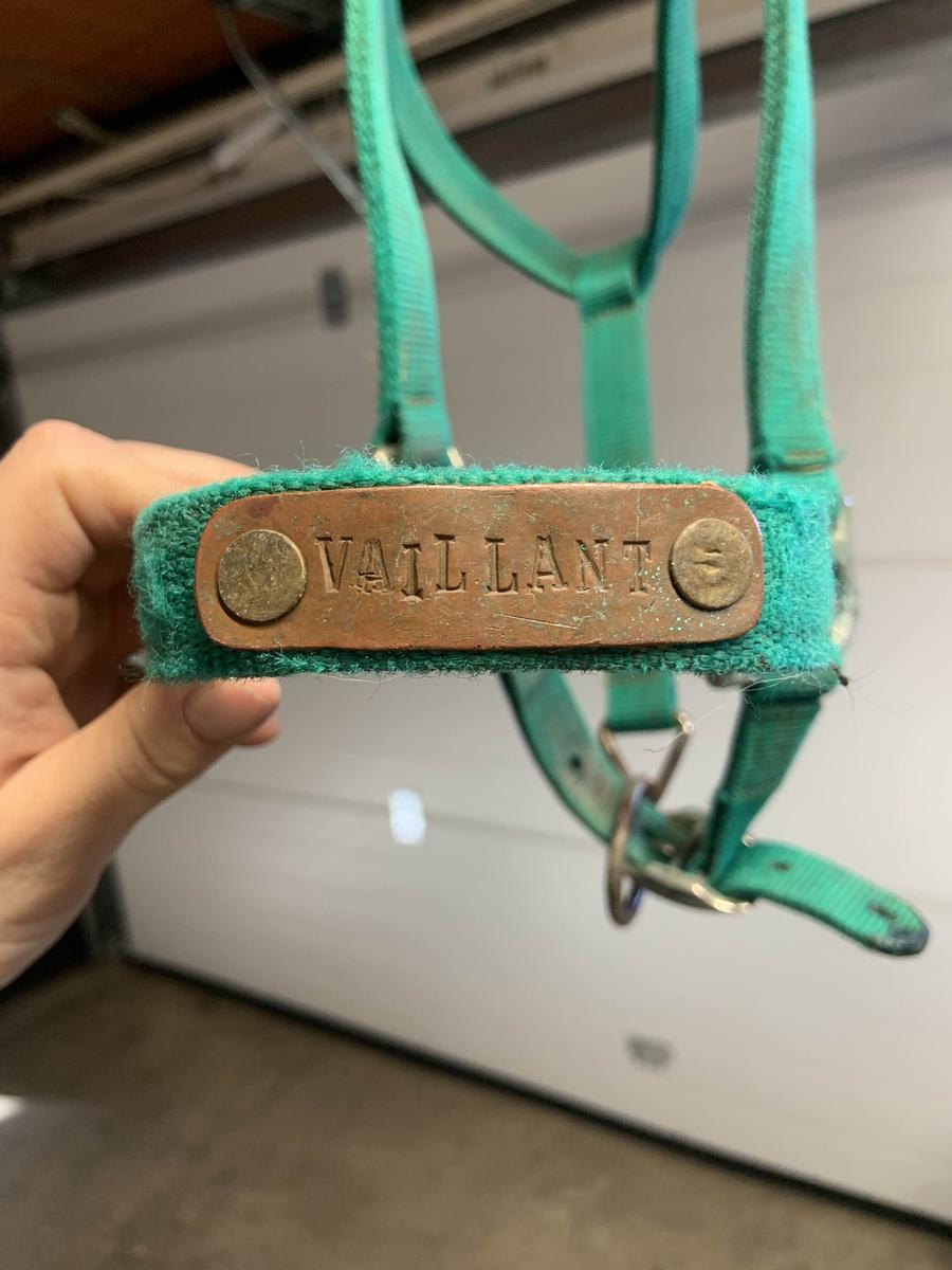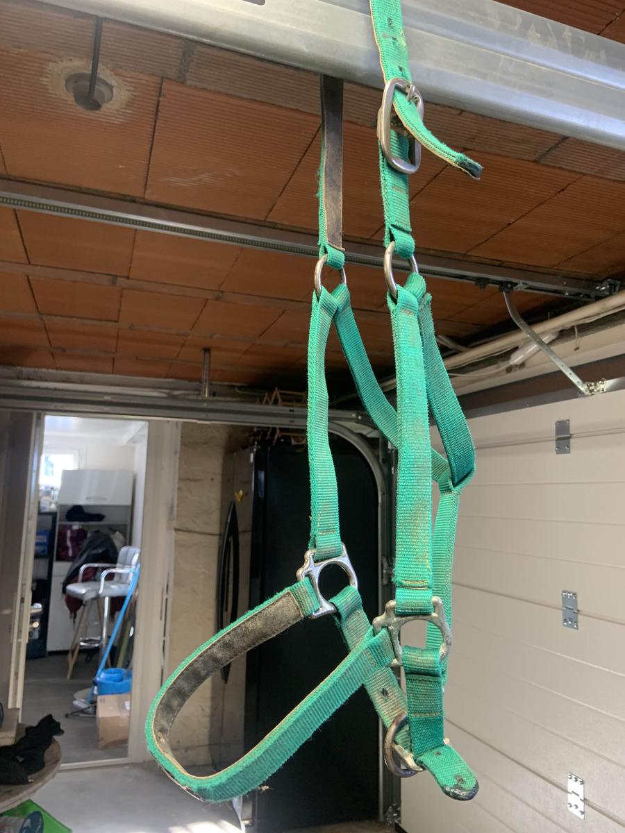 licol vert taille full avec une plaque graver vaillan le licol reste correct
