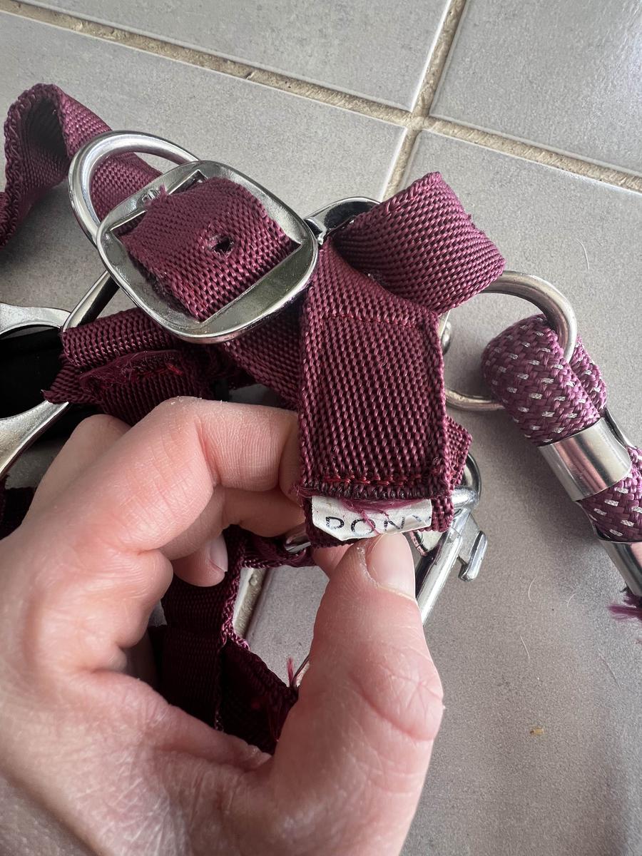 À noter: le mousqueton de la longe s’est un peu oxydé et la longe n’est plus rembourrée au niveau de l’embout mais elle peut tout à fait encore être utilisée.