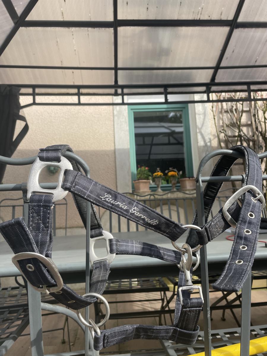 licol noir, gris avec des traits bleu clair