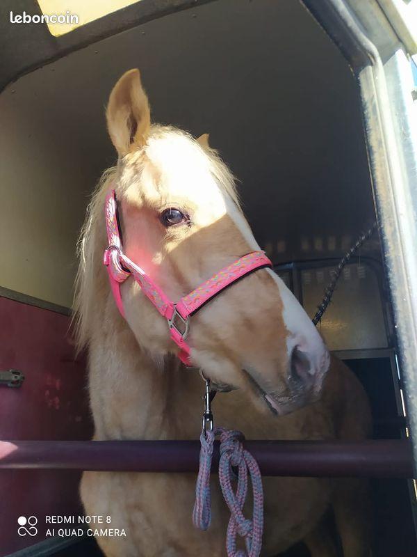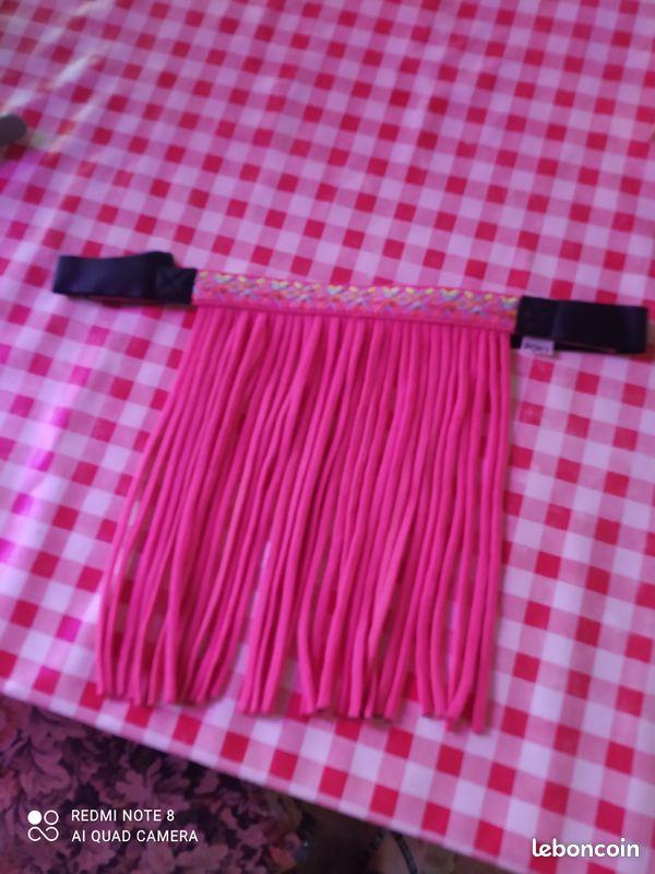 Vend licol rose flashy taille poney, mais convient aussi au poulain jusqu'à l'âge de 2ans. Vendu avec la frontale antimouche assortie. Bon état