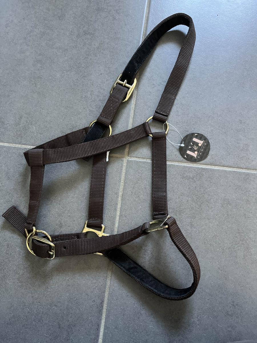 Licol synthétique doublé suédine T de T, marron, taille cob, jamais utilisé, neuf avec étiquette.