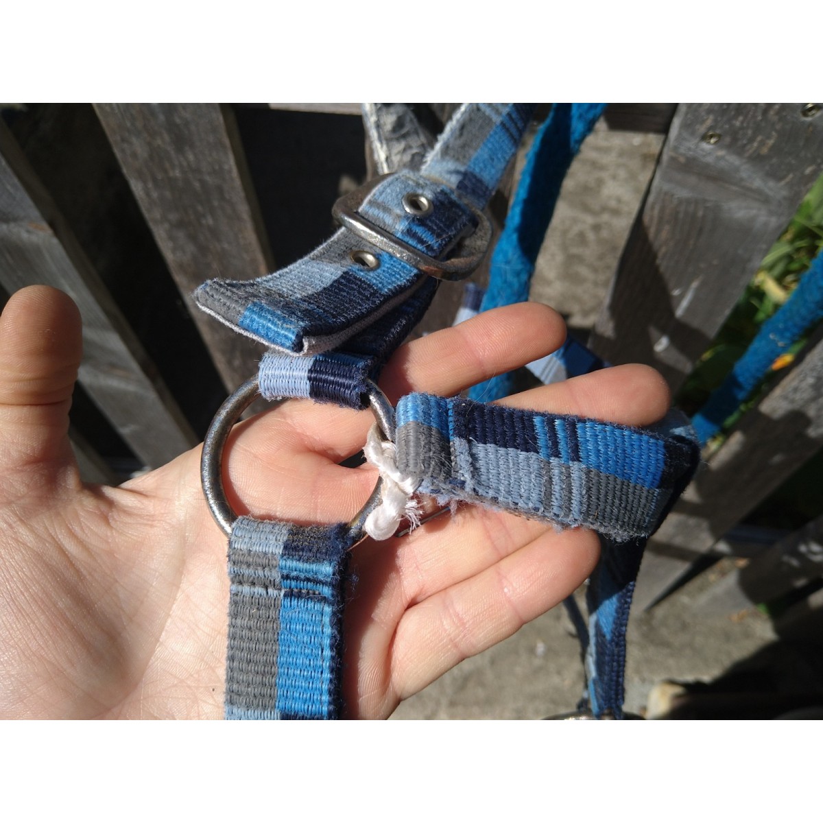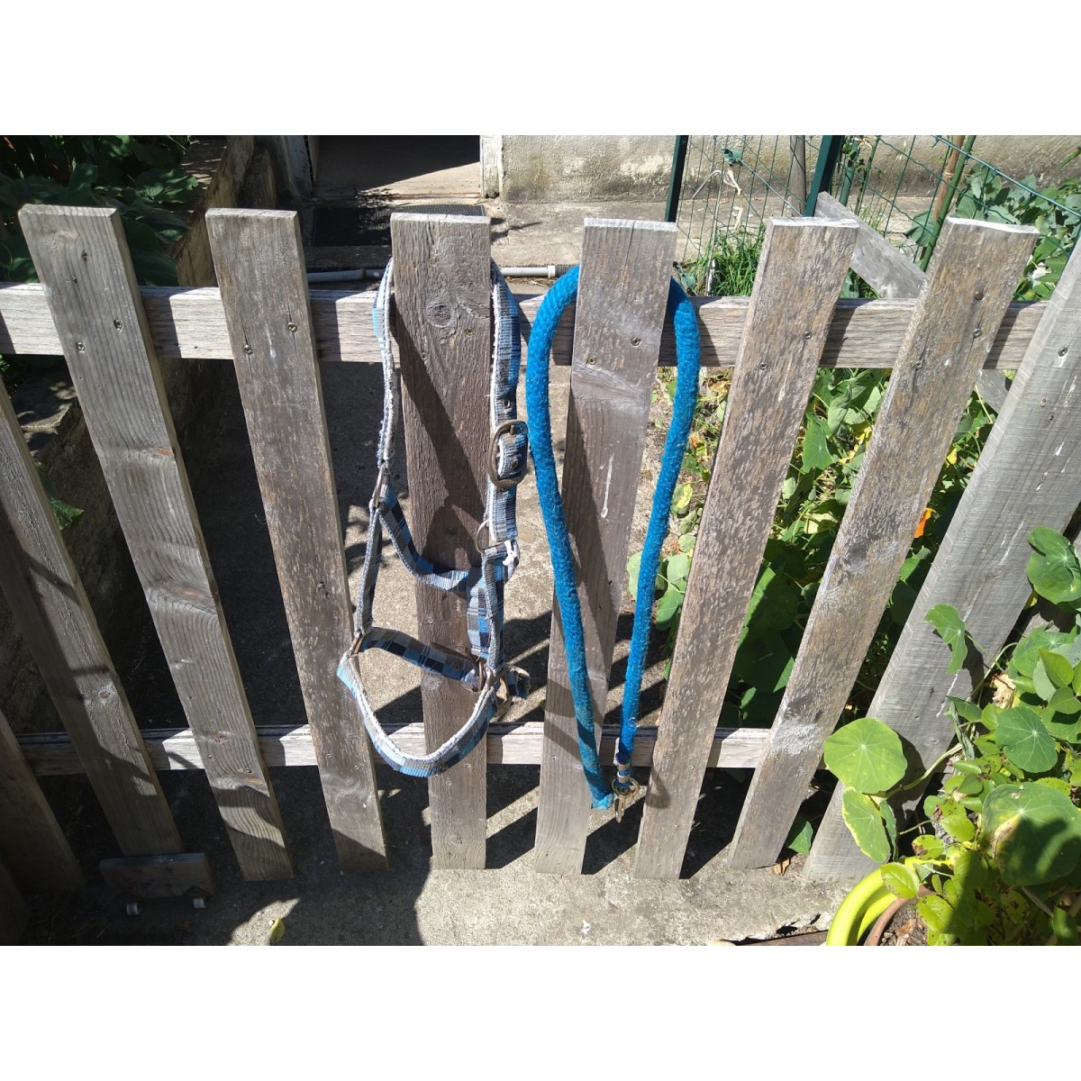 Présence de trace d'usure sur la têtière et la muserolle, licol parfait pour la mise au près