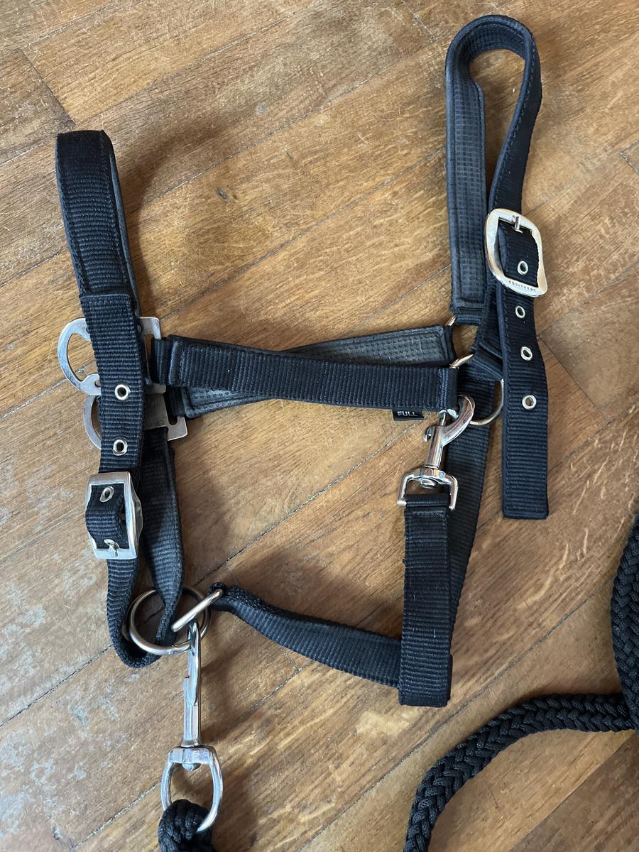 Je vend un licol noir avec sa longe noir taille cheval (utilisé 9 fois) il et comme neuf