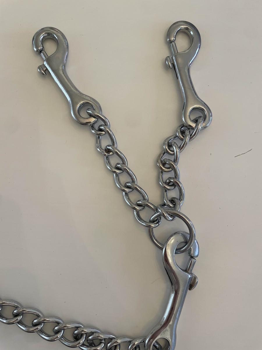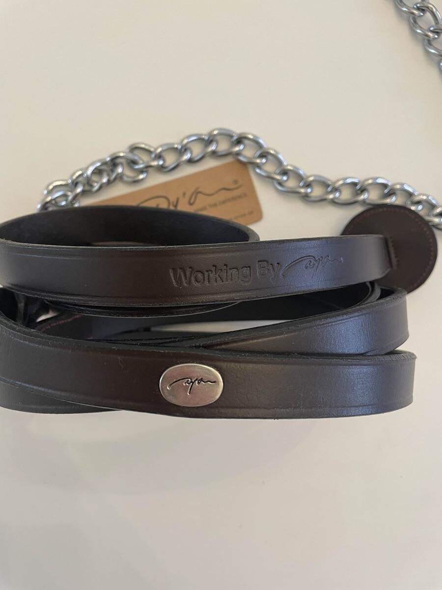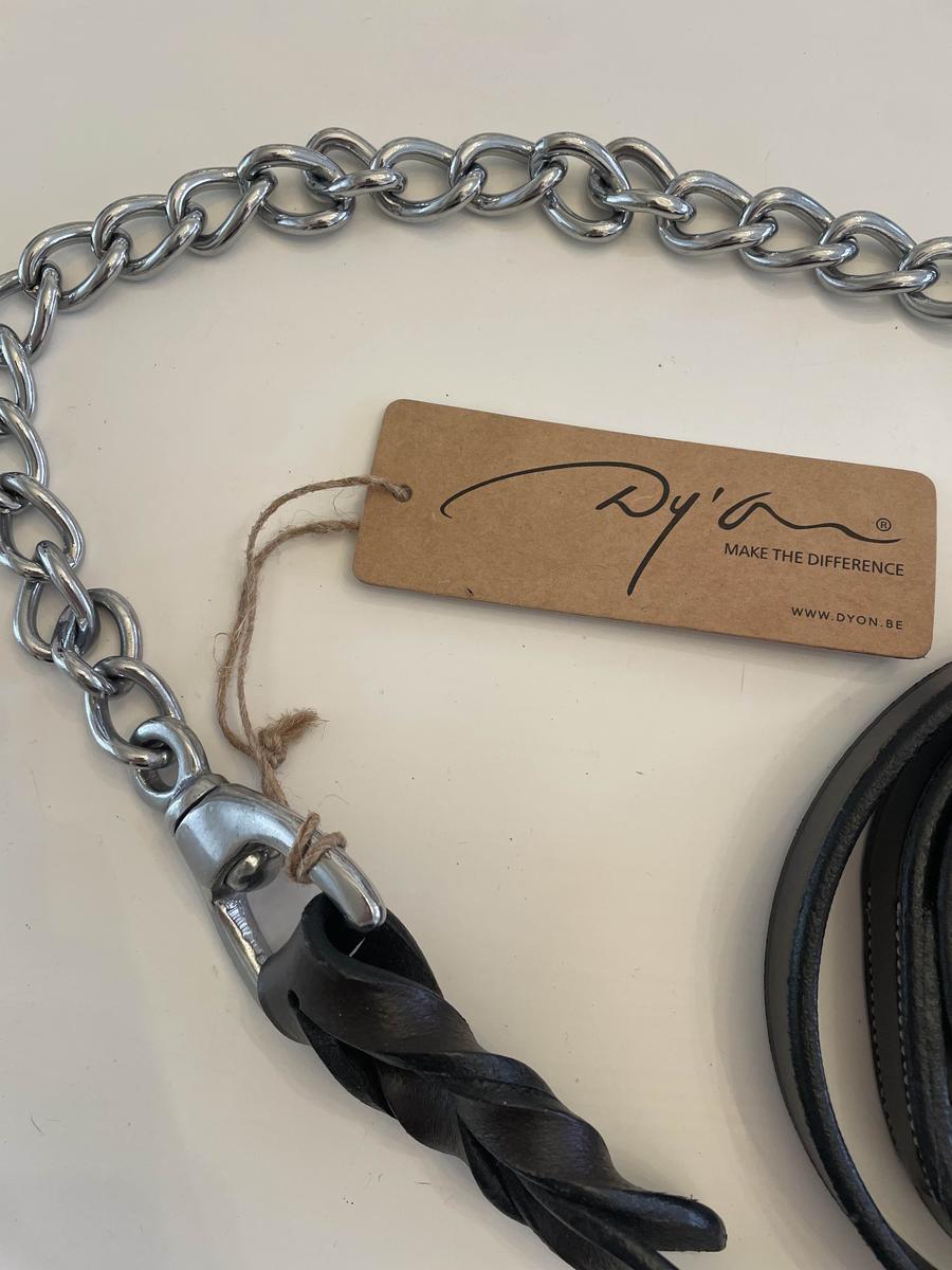 Longe de présentation en cuir brun avec chaîne et mousquetons argentés Dy’On, longueur de 2m, pratique pour les présentations d’étalons