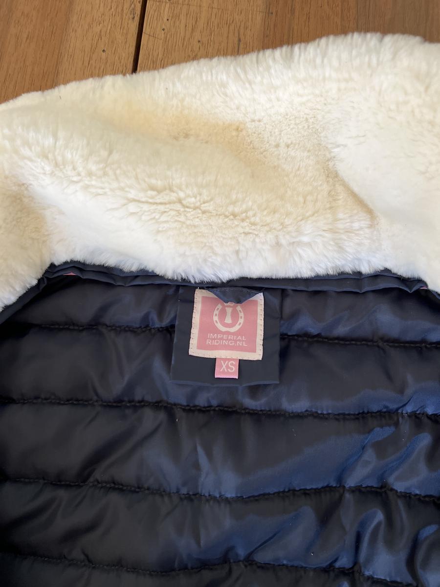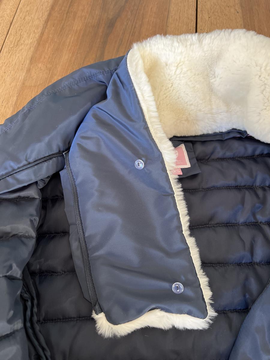 Blouson Imperiel Riding taille XS ou 14 ans, couleur bleu marine, moumoute blanche au col, amovible . Porté 1 fois comme neuf. Prix d’achat 115€ vendu 35€