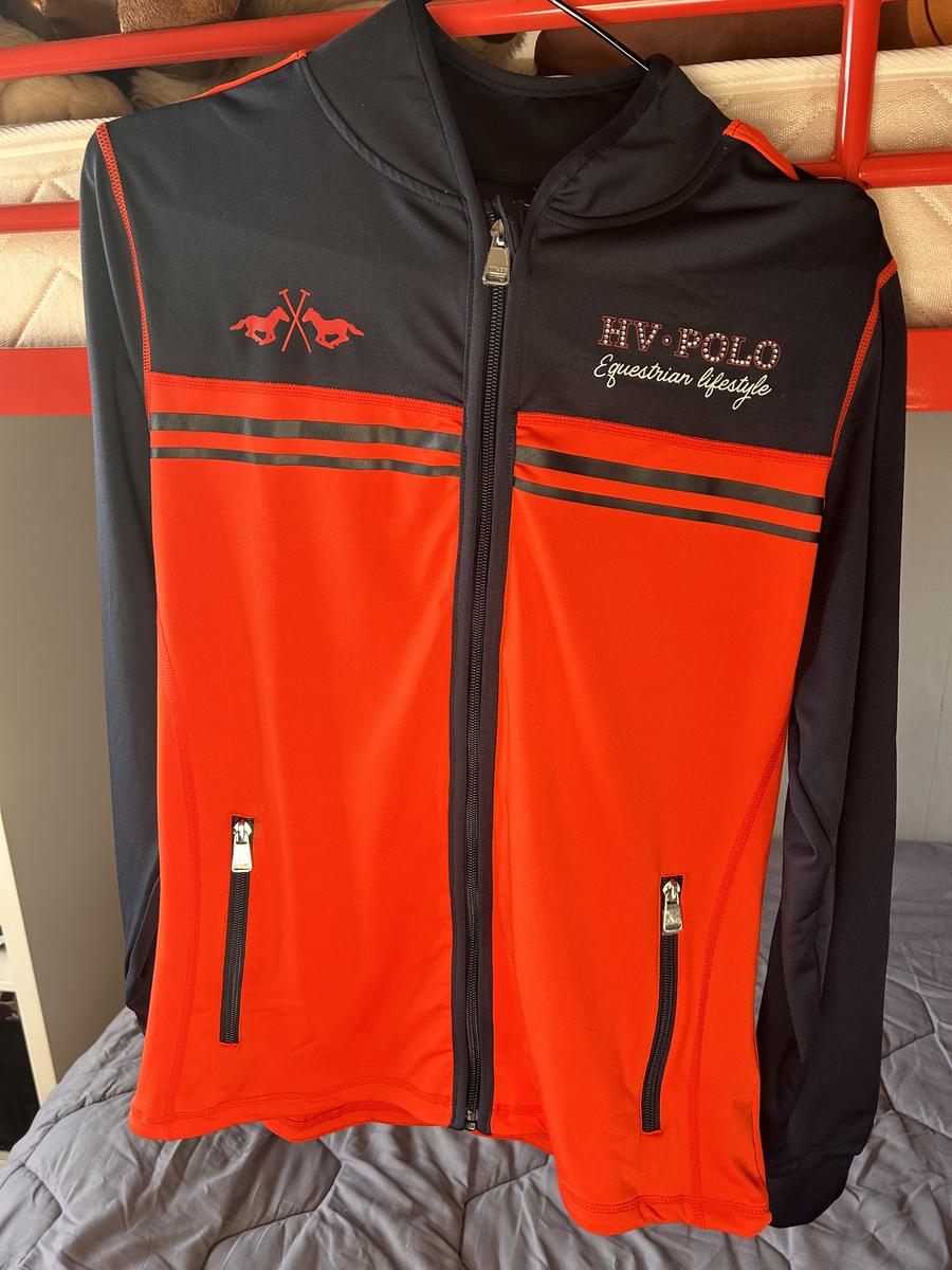 VESTE ZIP HV POLO ROUGE/MARINE MANCHE LONGUE AVEC ELEGANT LOGO EN STRASS * TAILLE M