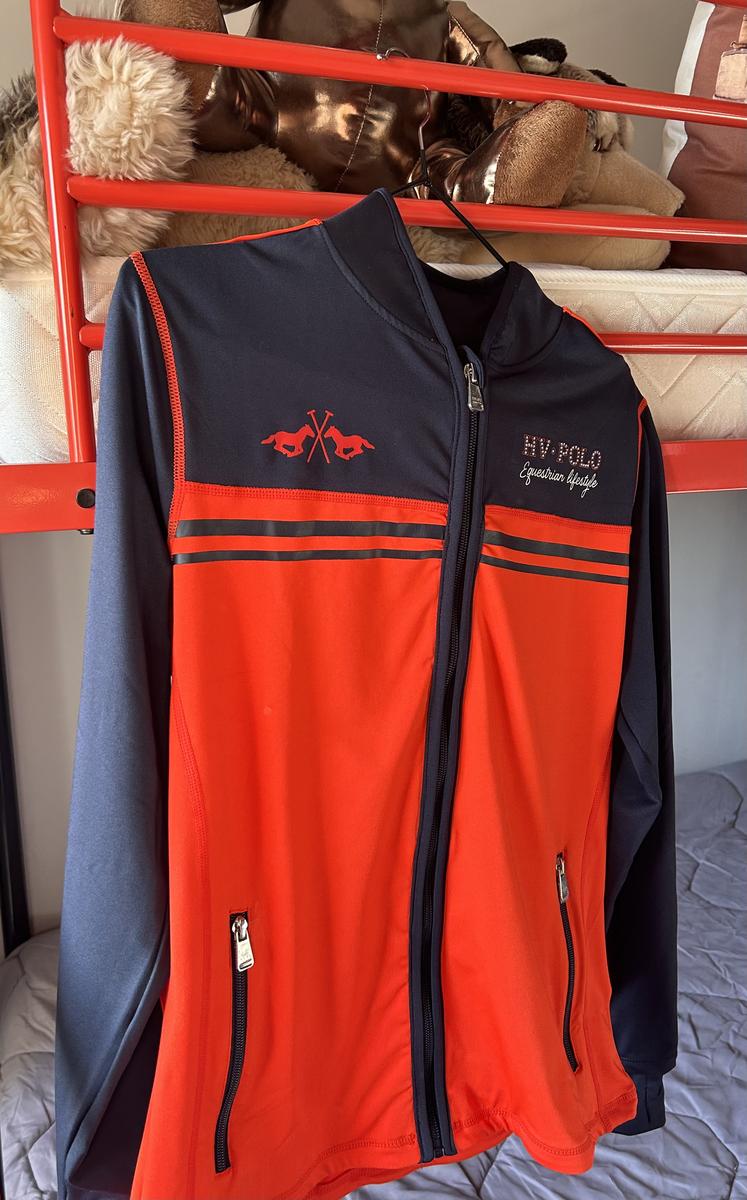 VESTE ZIP HV POLO ROUGE/MARINE MANCHE LONGUE AVEC ELEGANT LOGO EN STRASS * TAILLE M