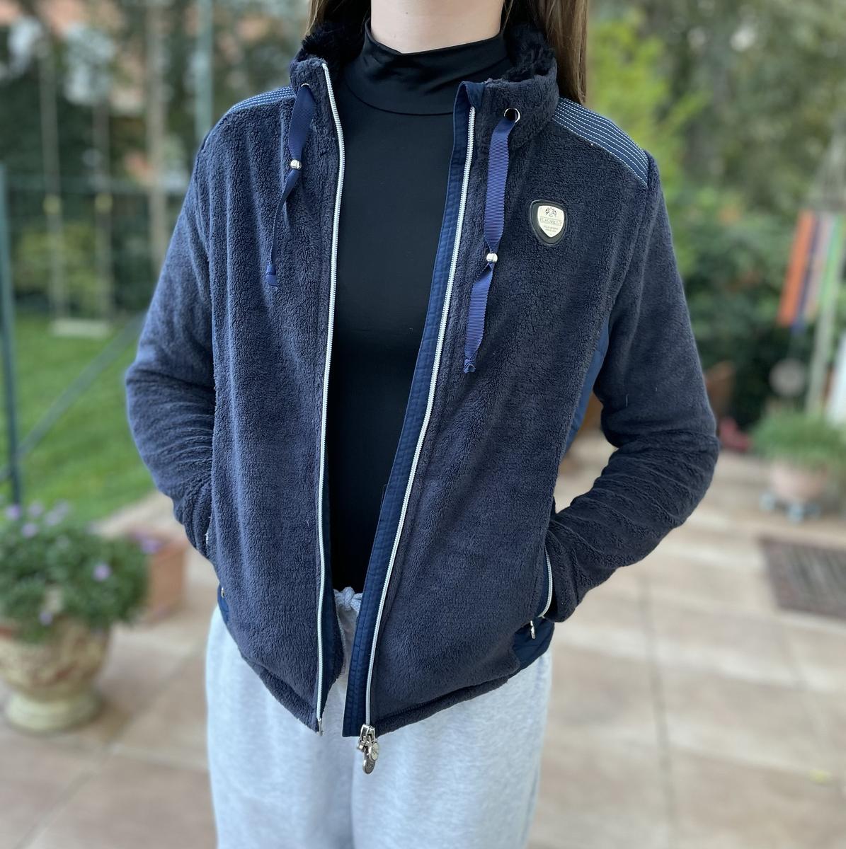 Veste polaire douce légère et près du corps . Fille 12 ans 152 cm, bleu marine et argent , en très bon état .