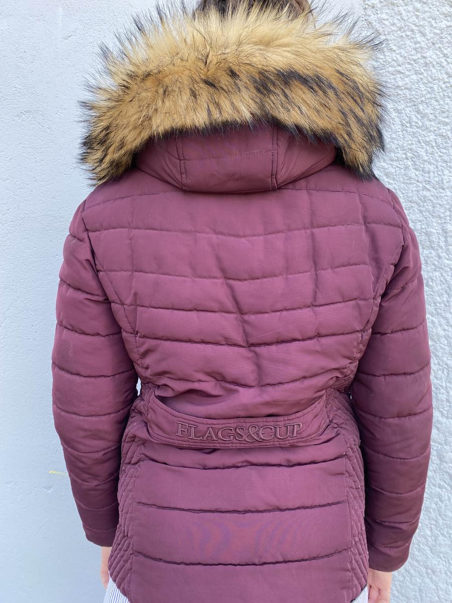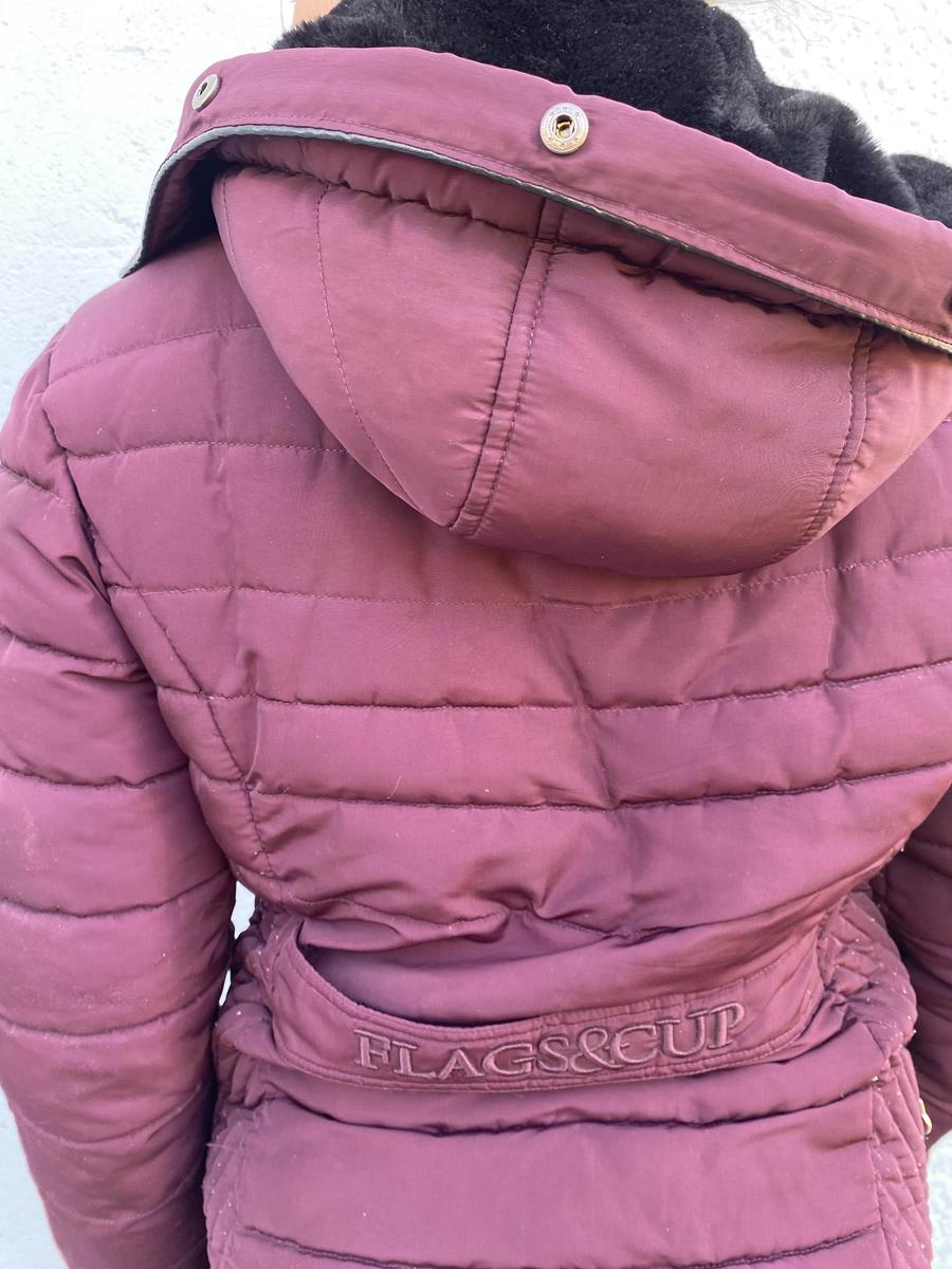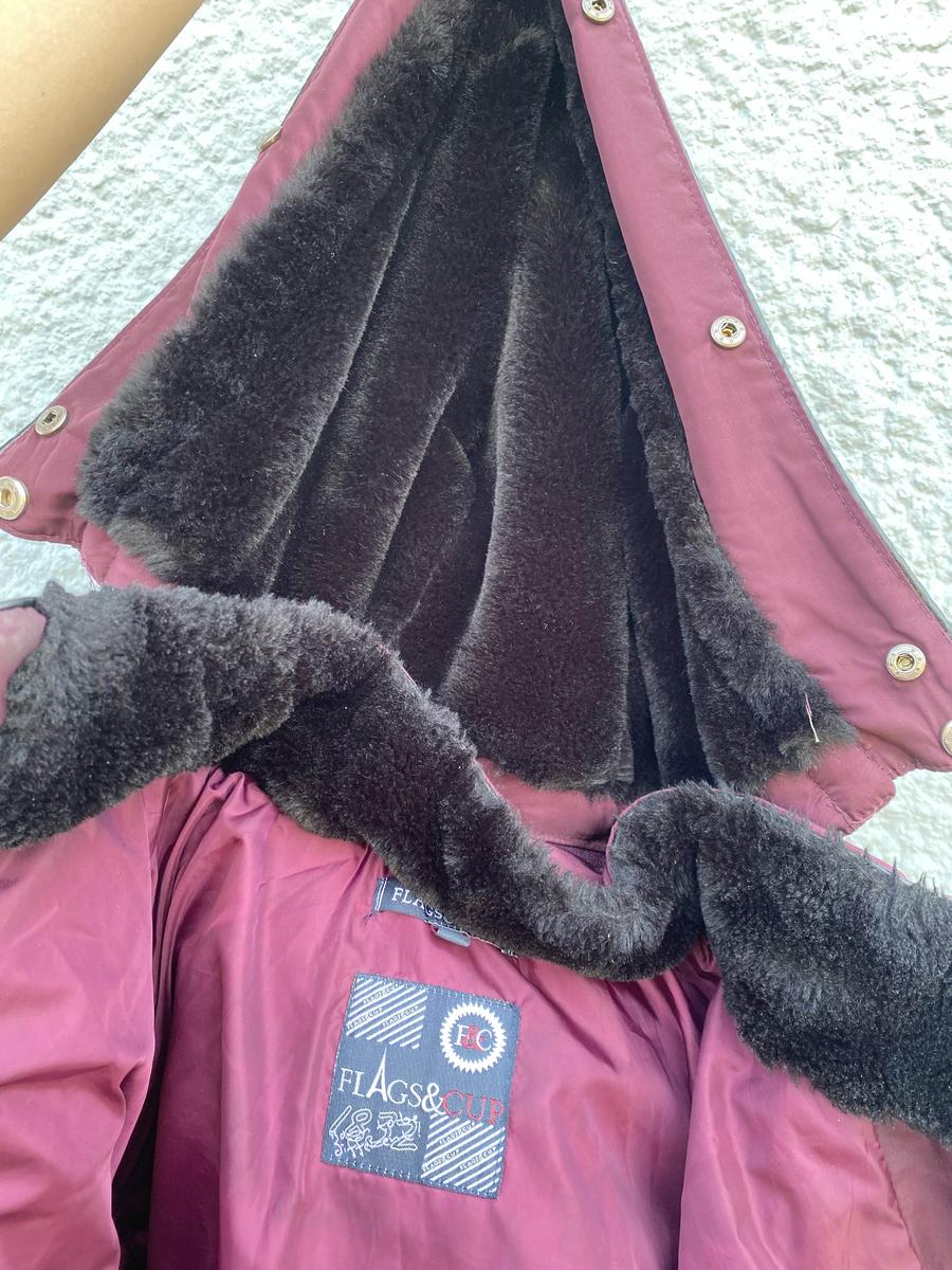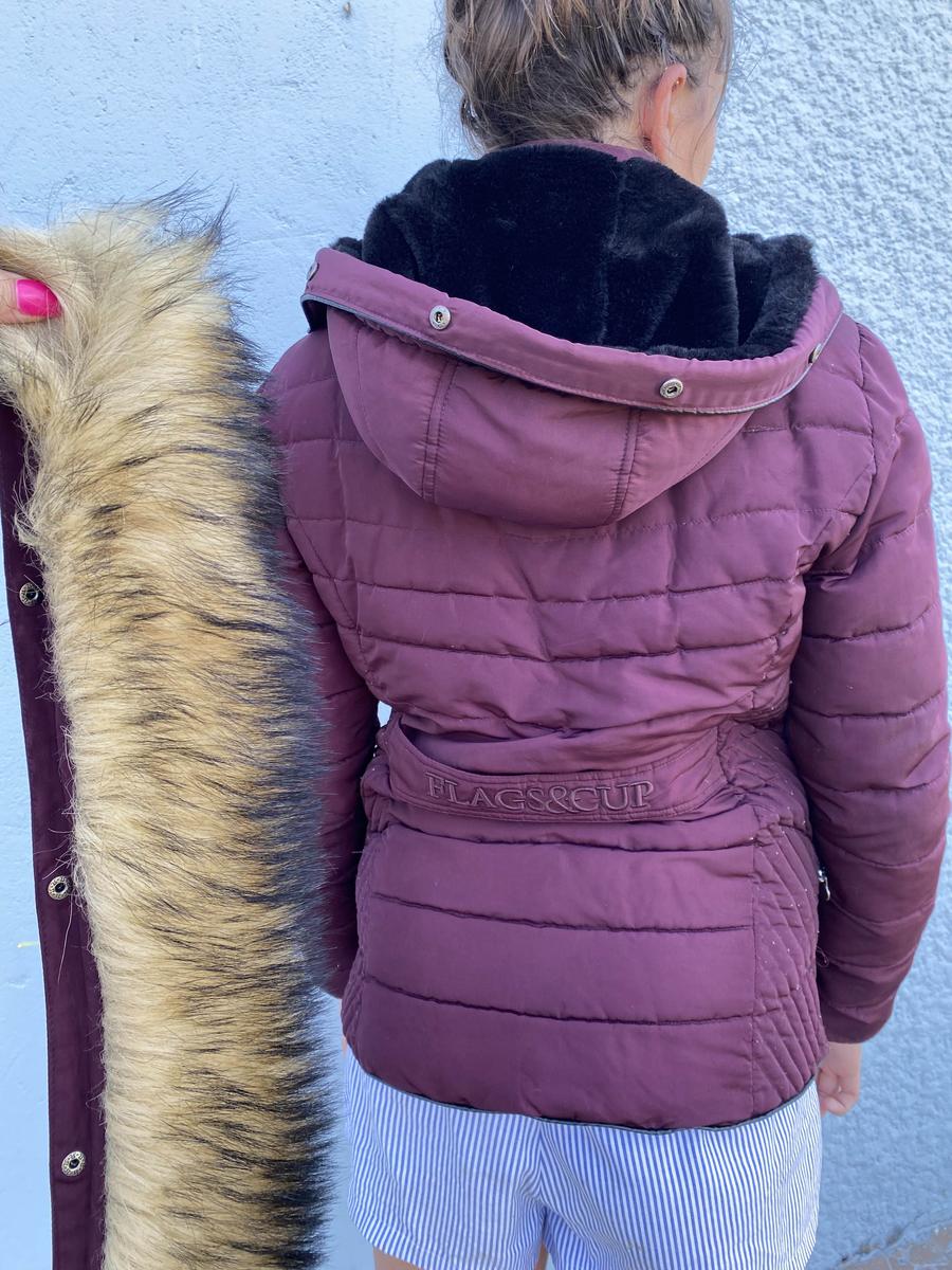 doudoune en très bon état, parfaite pour monter à cheval, ne gêne pas, et est très chaud pour l’hiver. La fourrure de la capuche peut être enlevée ainsi que la capuche en elle même. C’est une taille L mais je l’ai acheté pour une M, ce n’est pas un très grand L.