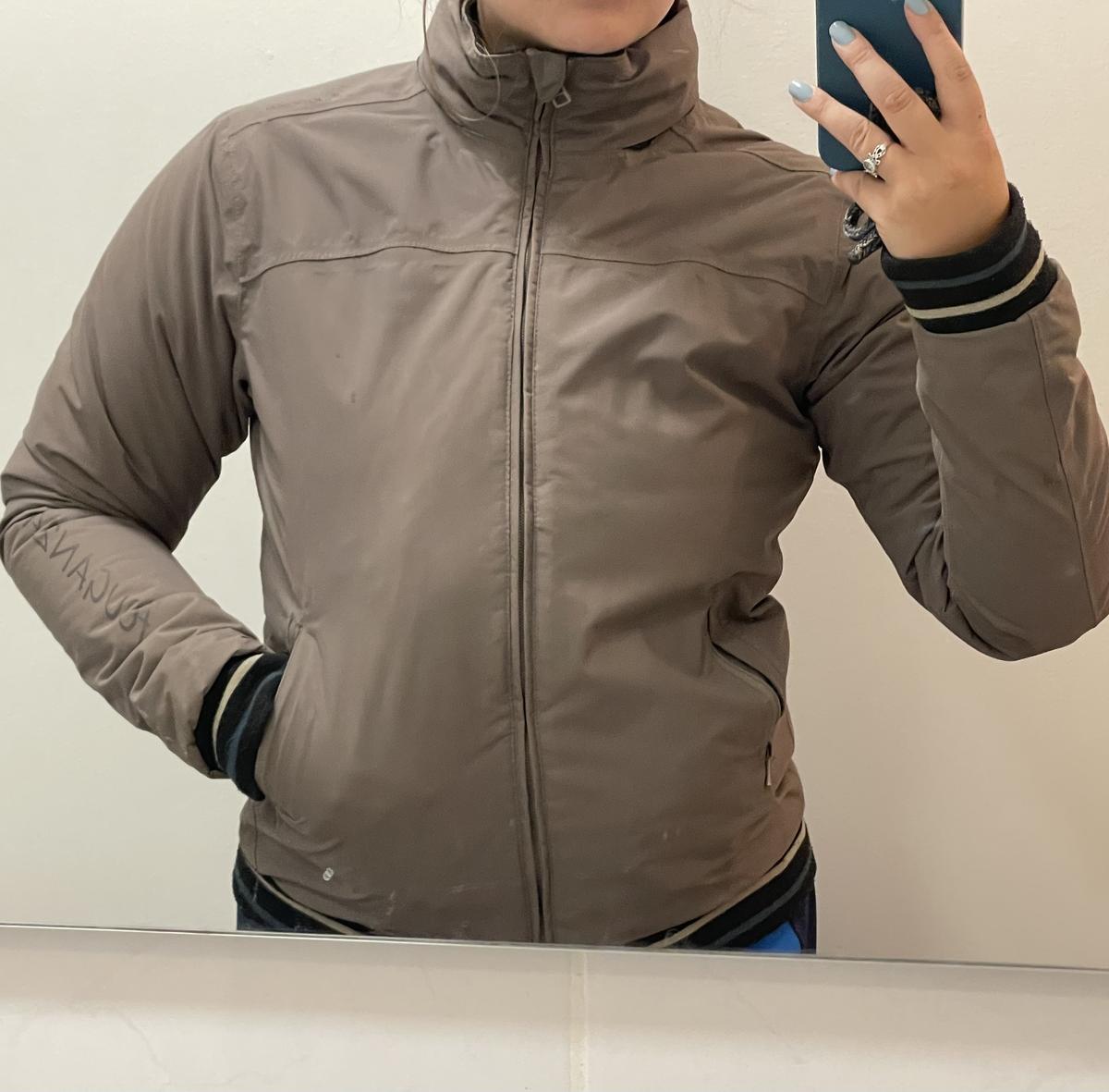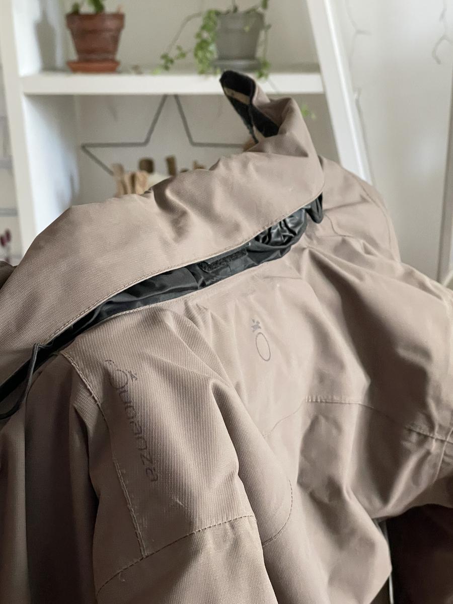 Déjà portée plusieurs hivers, tache de peinture sur une manche et usure normale sur l’élastique en bas du dos mais peut encore largement servir
