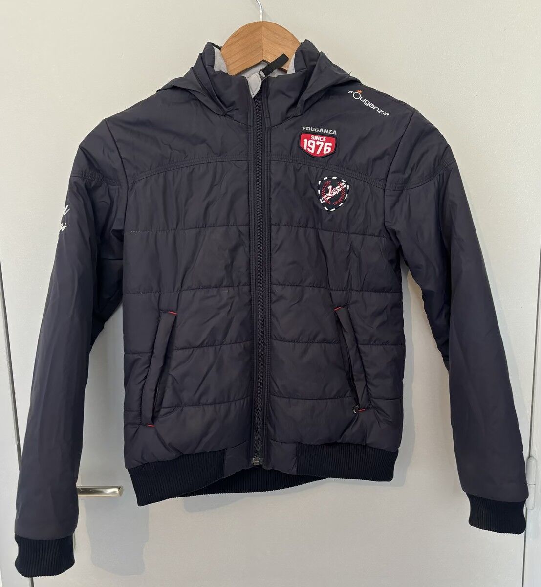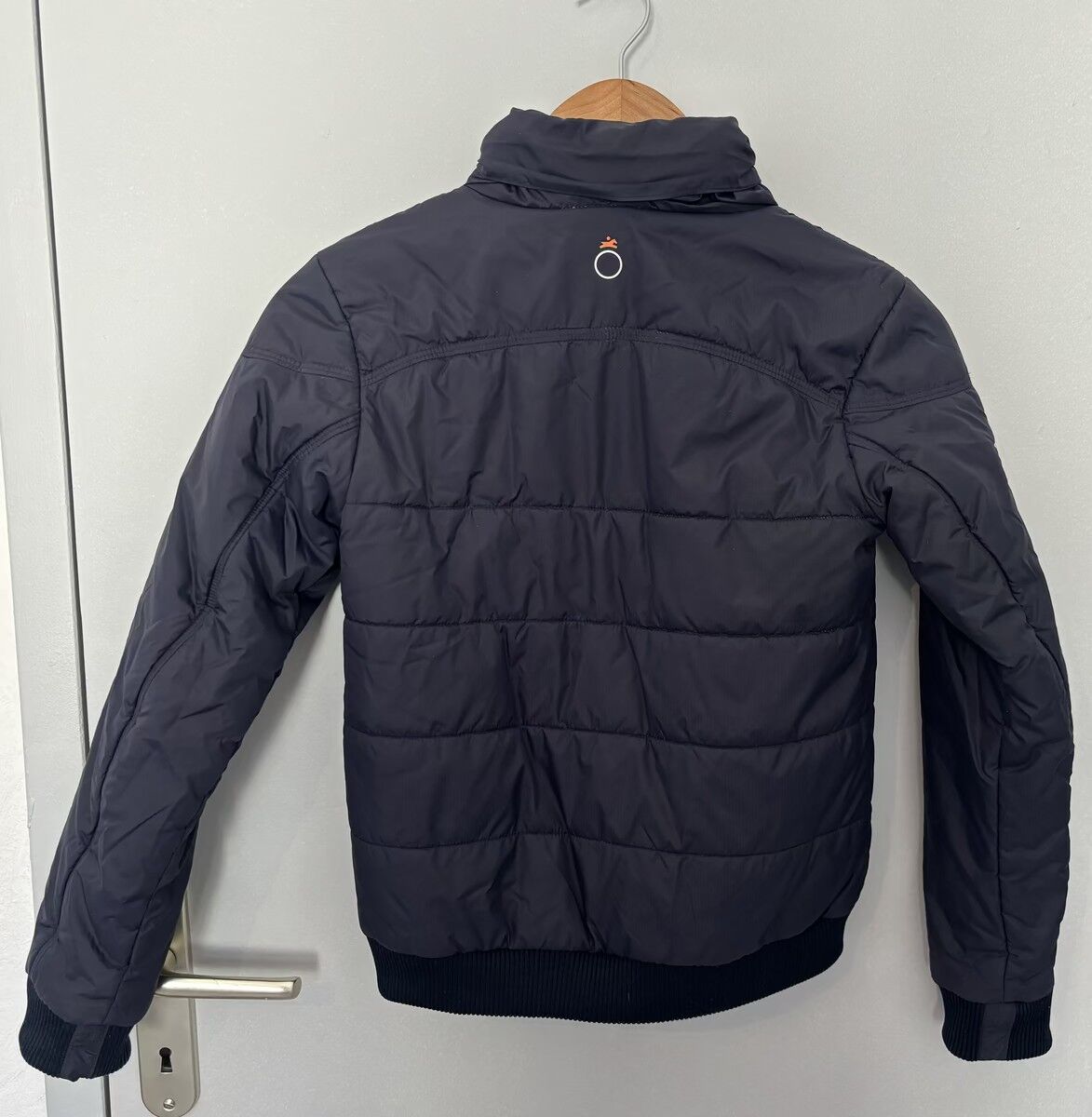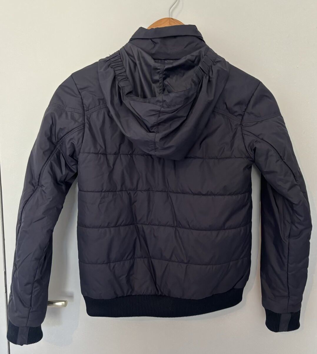 La veste à été portée quelques fois mais est en très bon état. La capuche peut ce ranger dans une poche au niveau de la nuque prévue à cet effet.