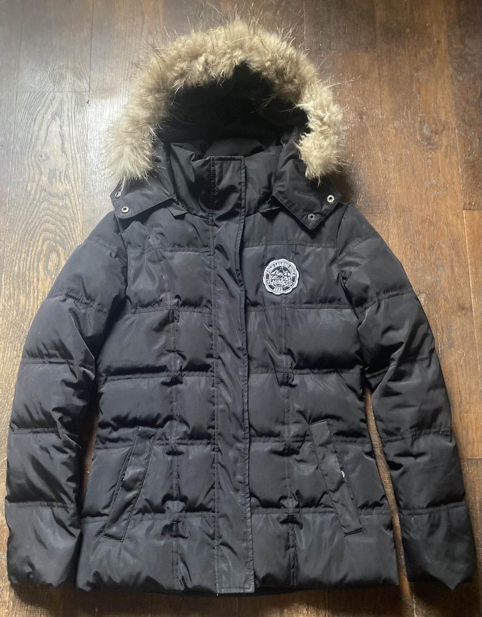 À vendre : veste d’hiver noire Flags & Cup, taille XS, en très bon état, comme neuve.