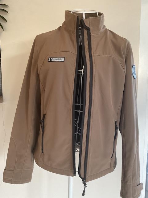 Très jolie veste en polyester,bien coupée.Couleur maron clair,état impeccable.