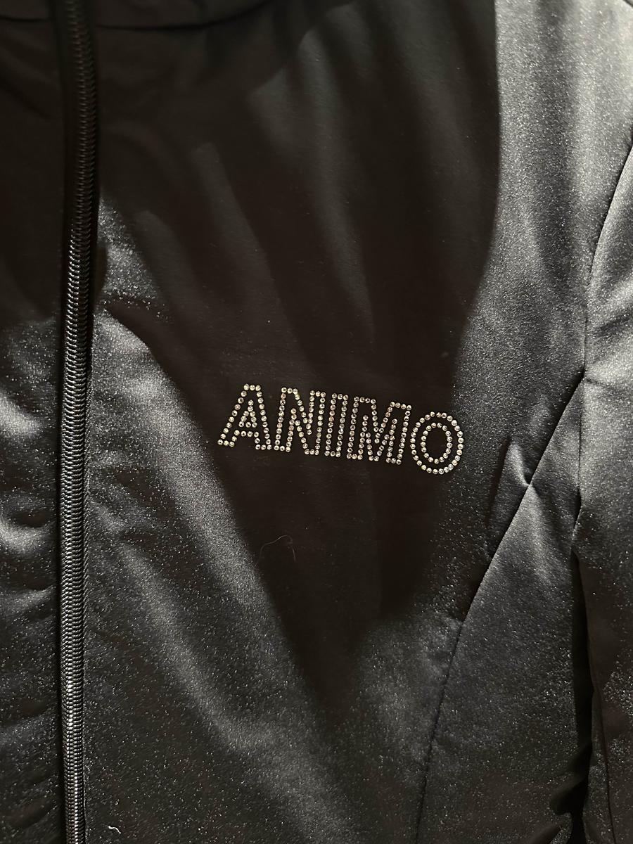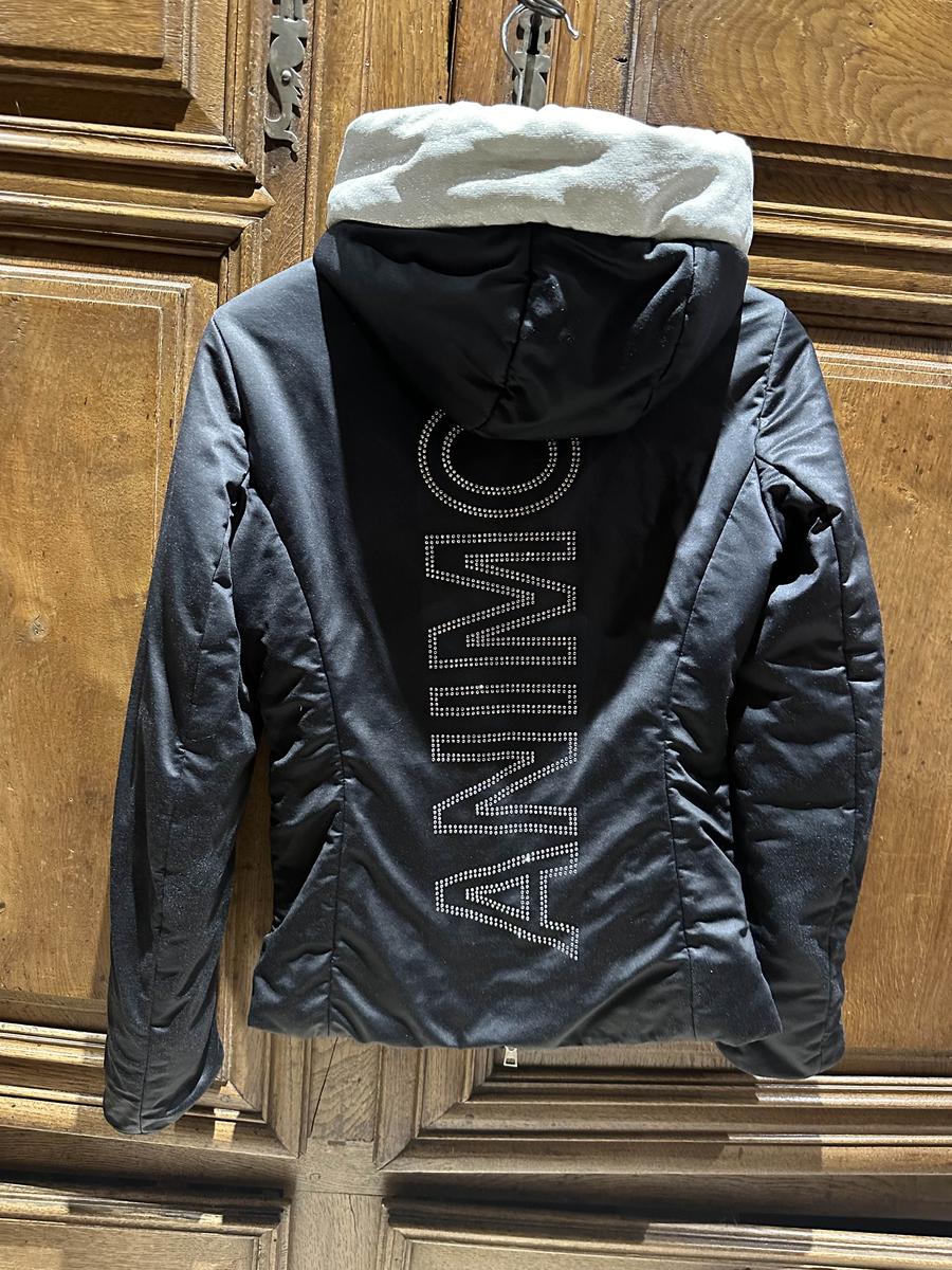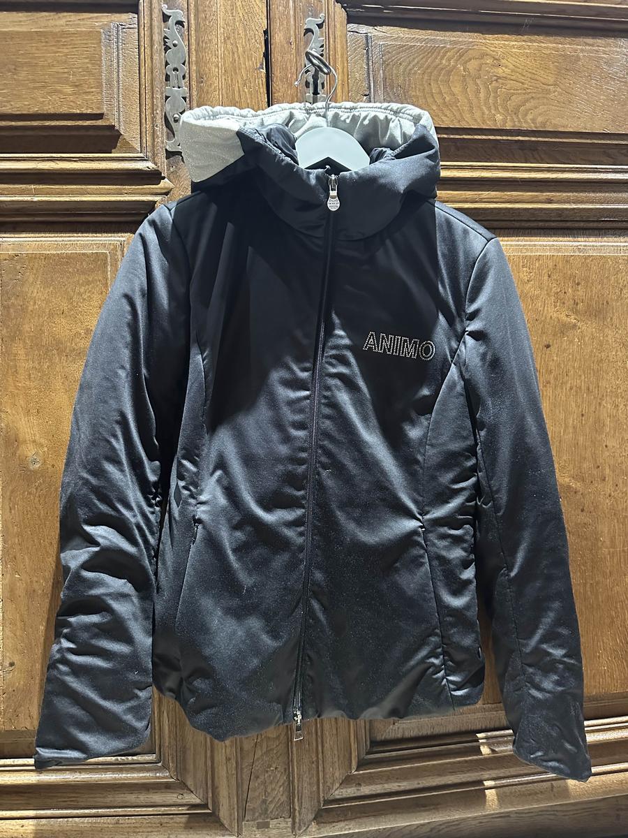 Doudoune femme Animo noire avec logo en strass, taille 34, très peu portée. excellent état.
