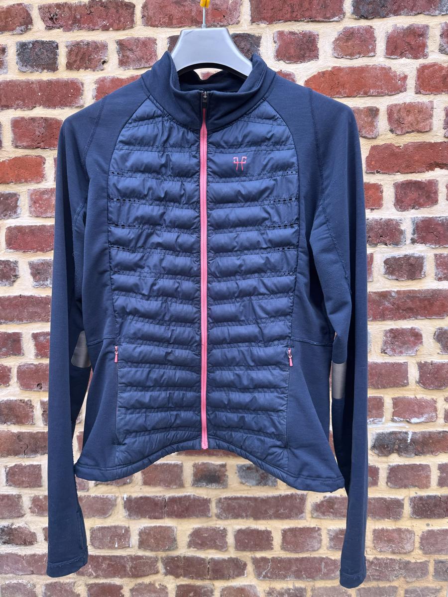 Veste Storm Horse Pilot bleu marine avec les fermetures et détails rose, taille L.