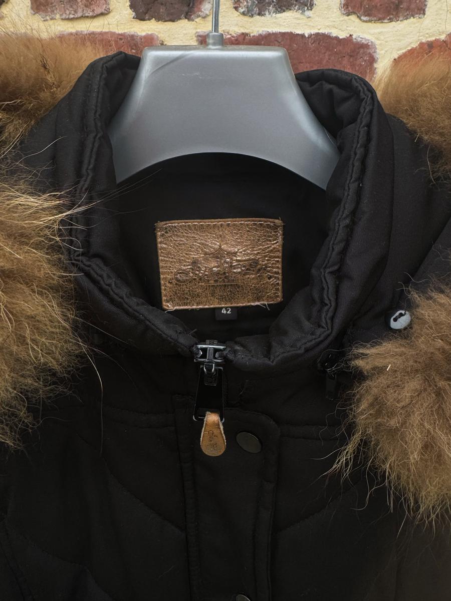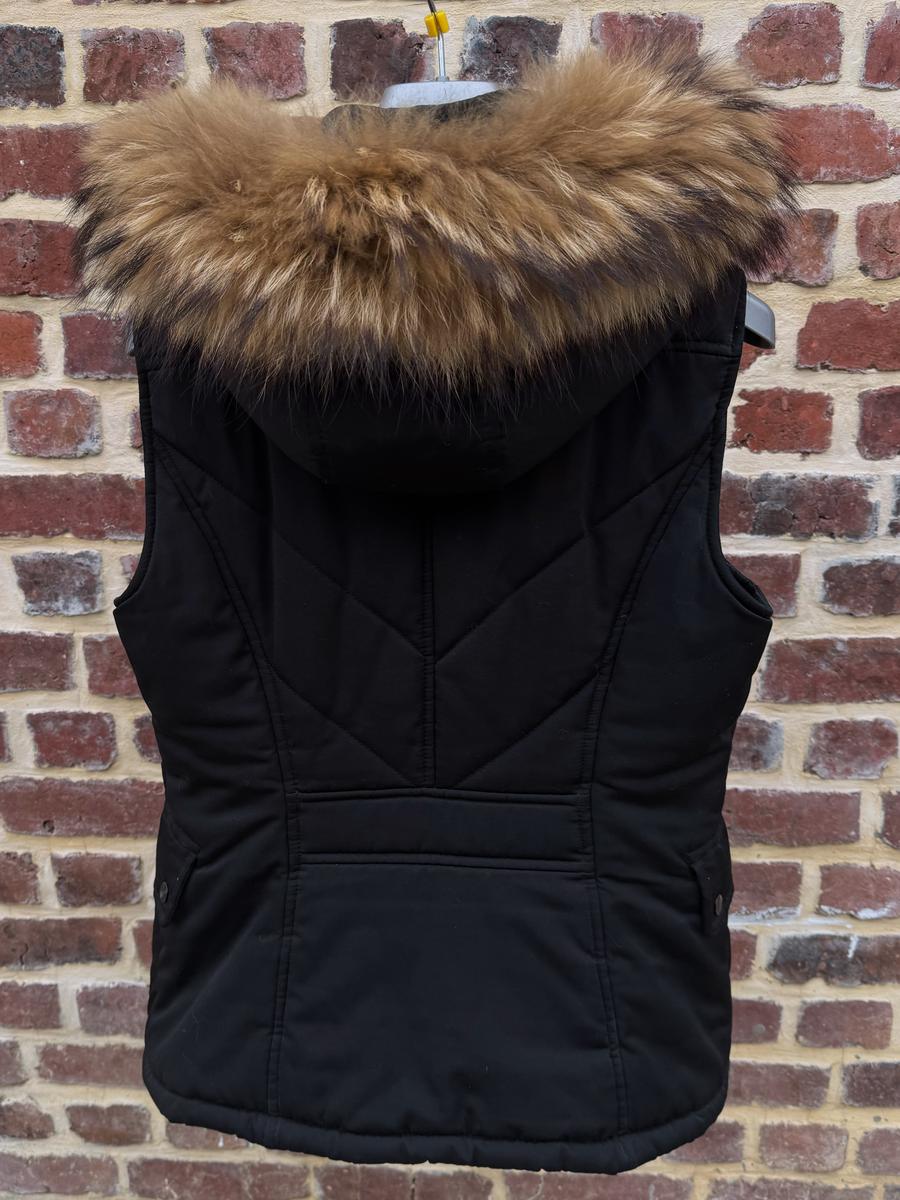 Doudoune sans manches noir Ju&Pa taille 42. Capuche retirable ainsi que la fourrure.