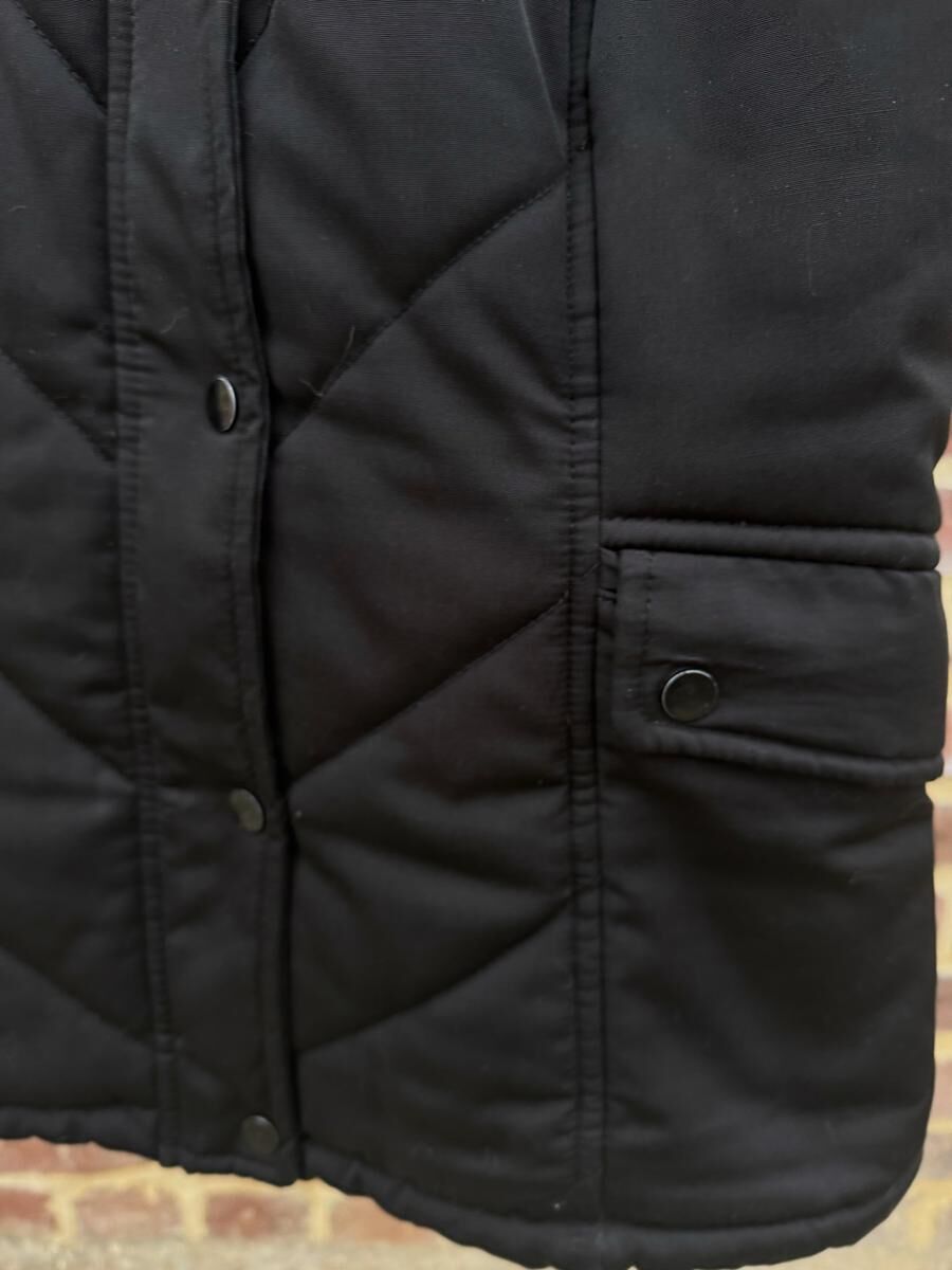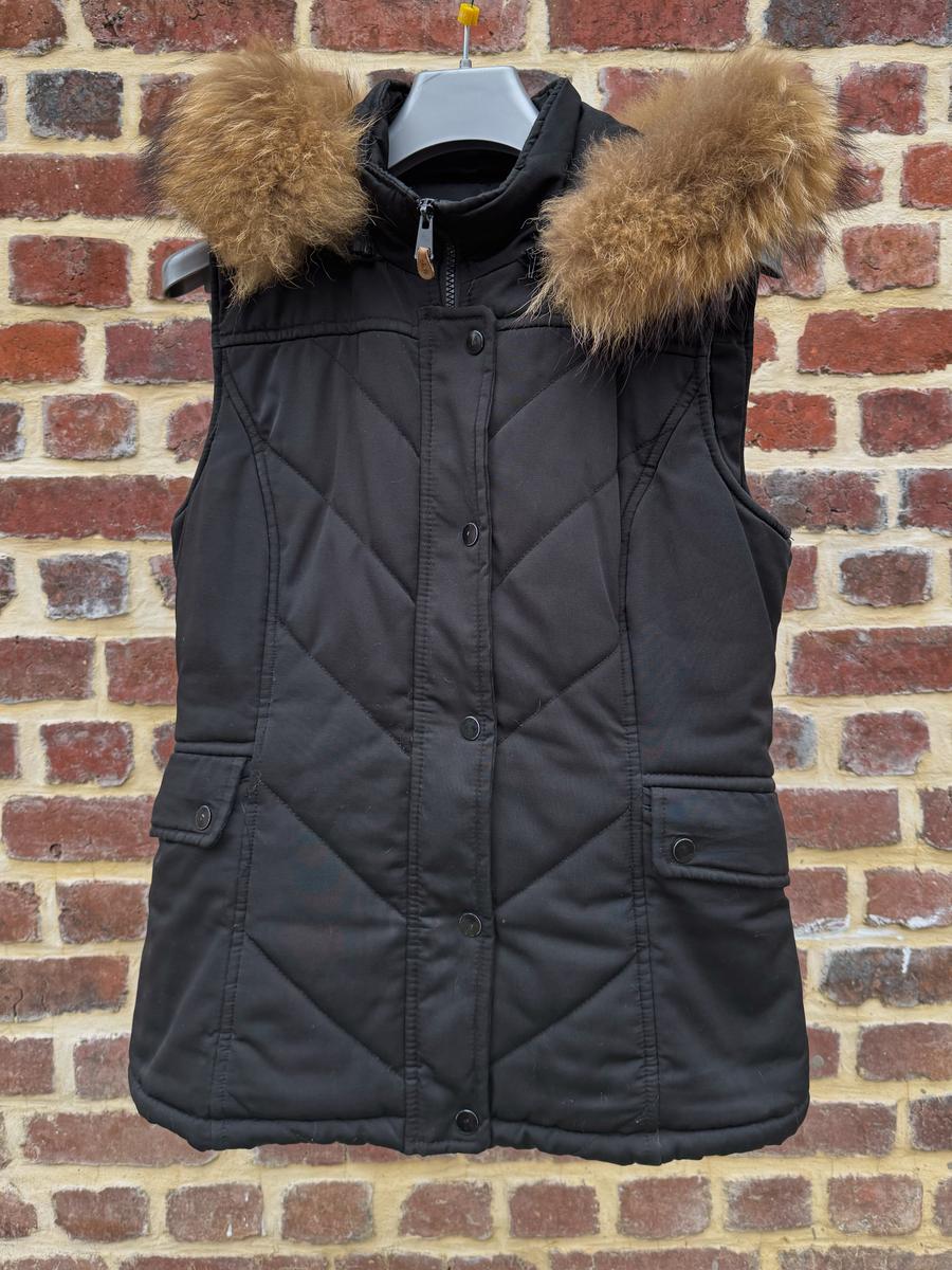 Doudoune sans manches noir Ju&Pa taille 42. Capuche retirable ainsi que la fourrure.