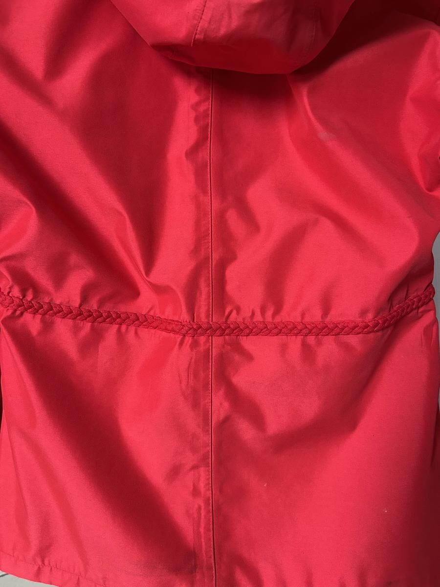 Parka Dada Sport de couleur rouge, taille M - fermeture éclair + bouton - tresse au niveau de la taille - 2 poches - petite tache au niveau des manche et des poches - capuche