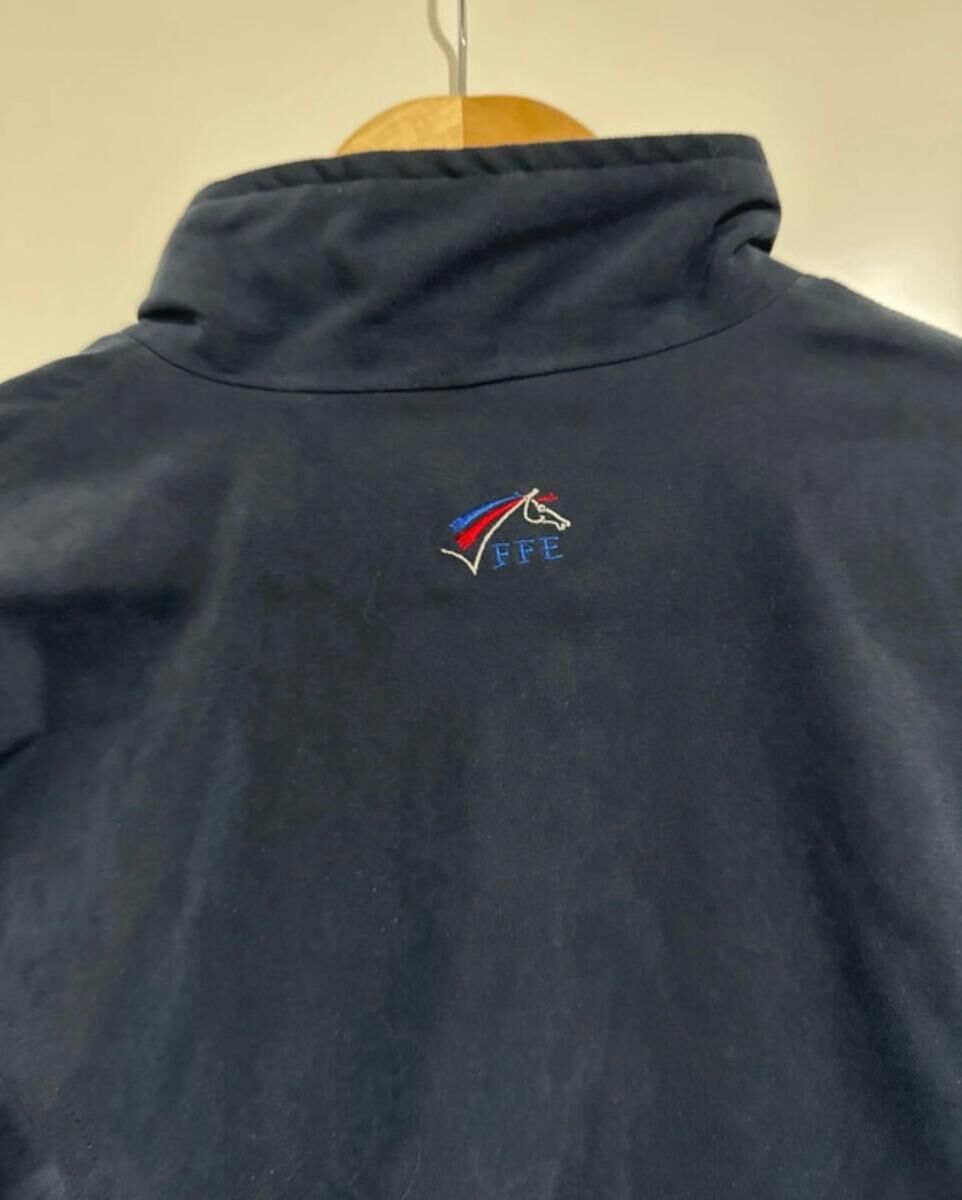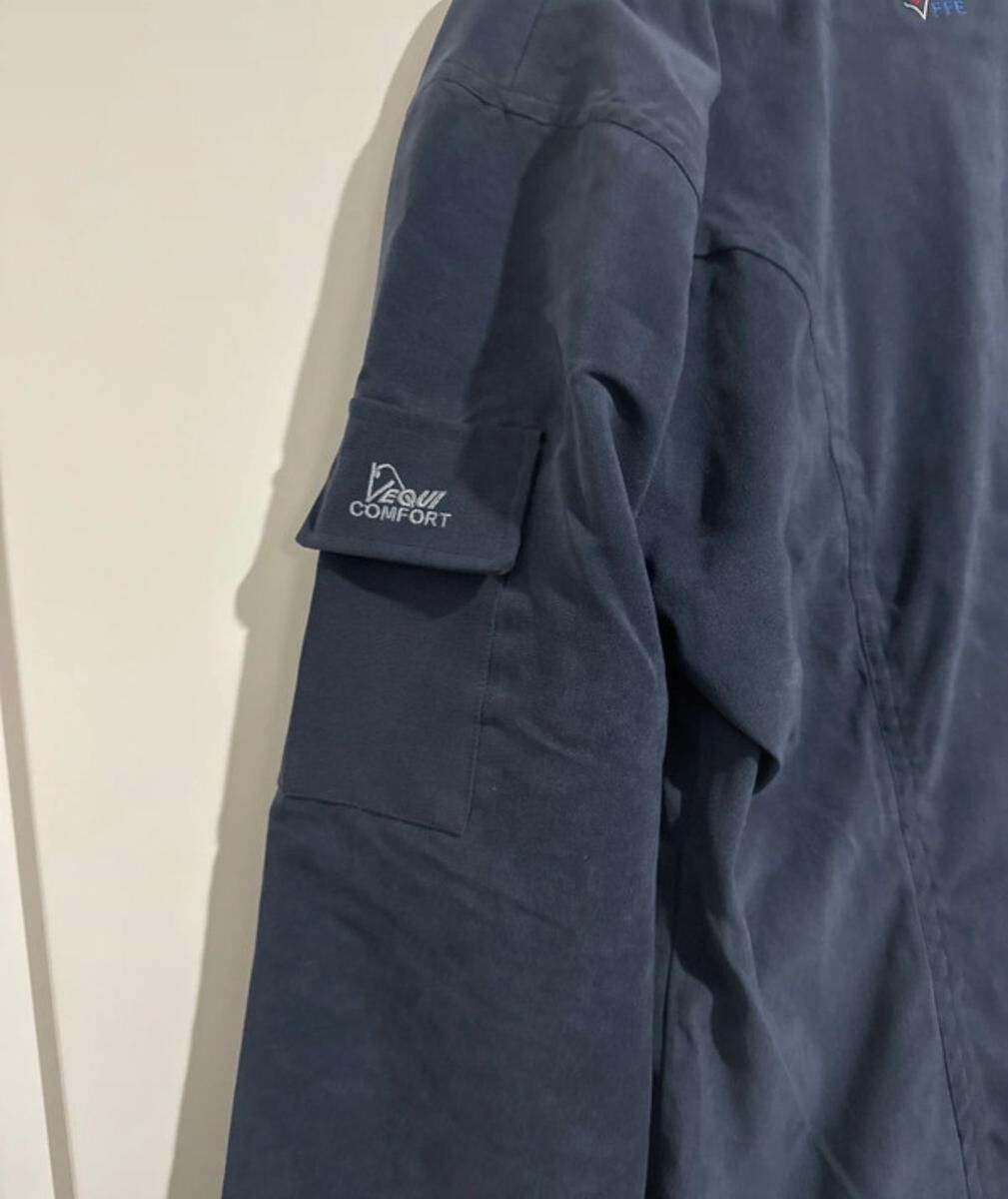 Veste marine de la marque EQUI COMFORT, taille 52 (XL), oversize , femme ou homme , fermeture éclair / scratch / bouton à clips, poche, logo de la marque à l’intérieur droit, oversize , très bon état