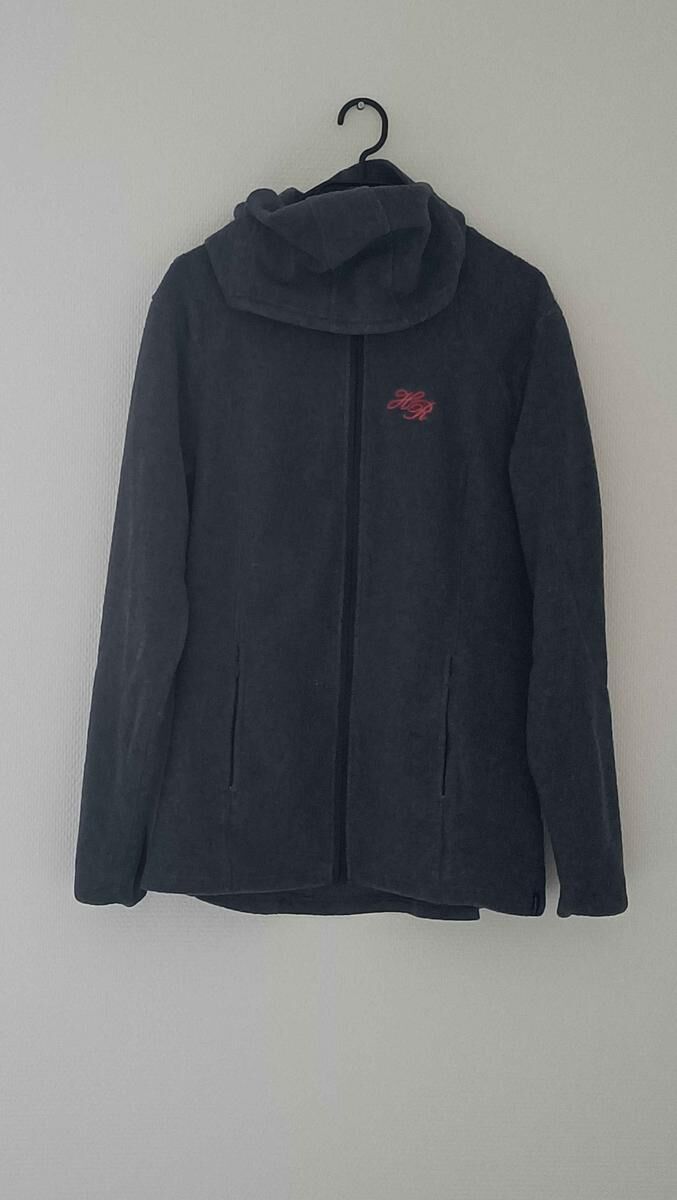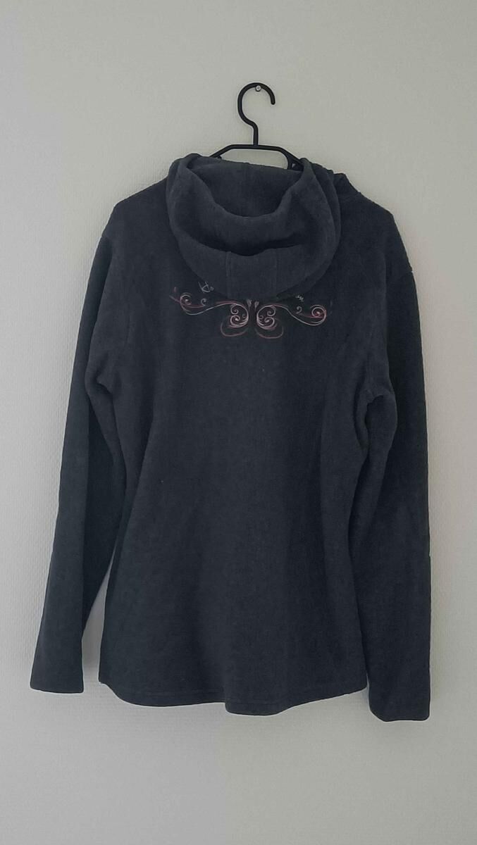 Veste Fouganza en polaire taille M. Grise avec écritures roses Capuche tour de cou.