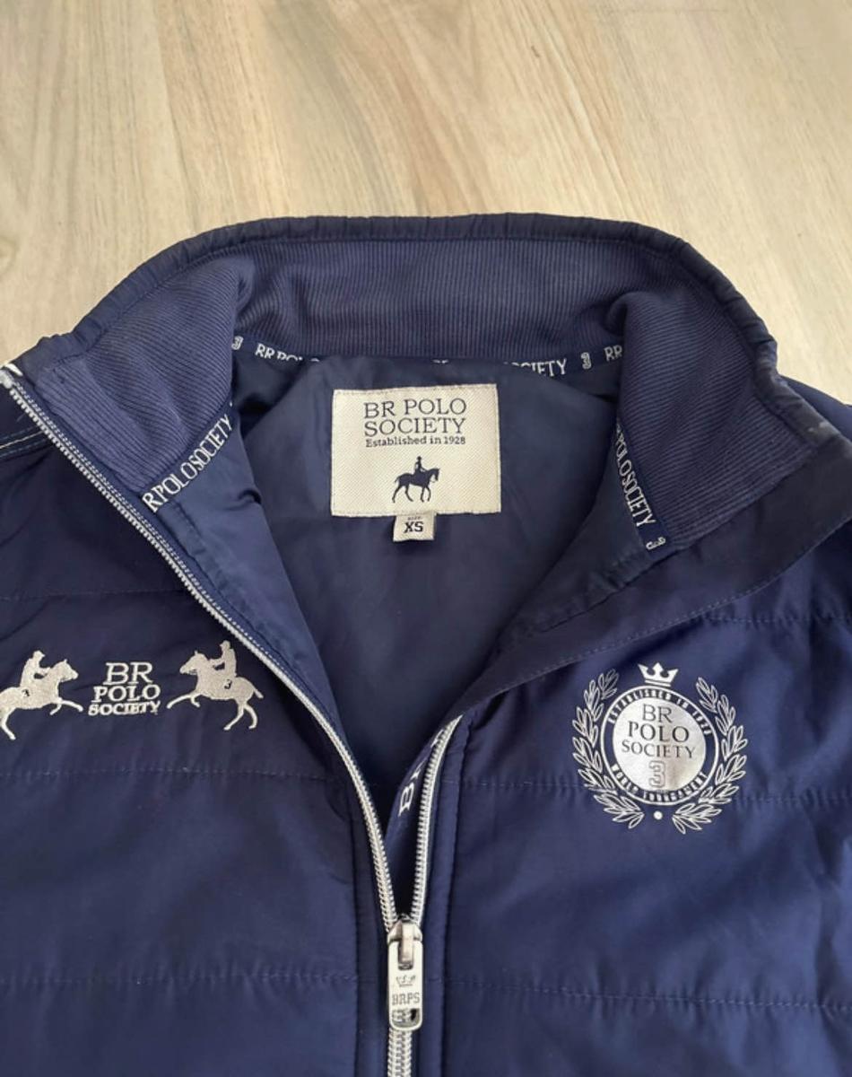bleue marine, taille xs, cette veste est parfaite pour l’automne ou le printemps ! Très bon état, marque br polo society
