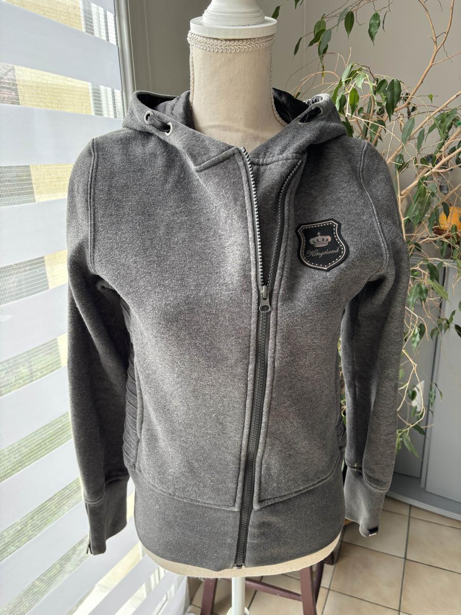 Veste type sweat zippé Kingsland en taille S, couleur gris, en très bon état, très peu portée.