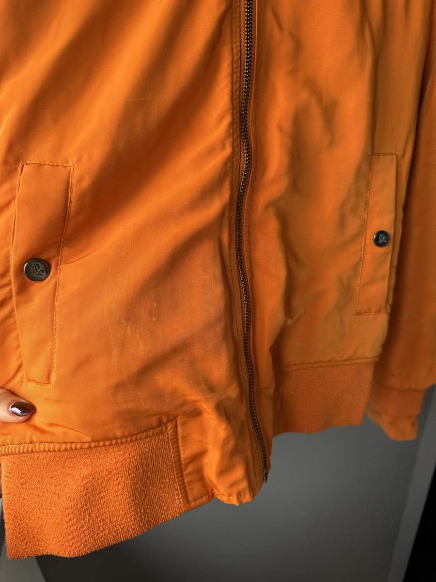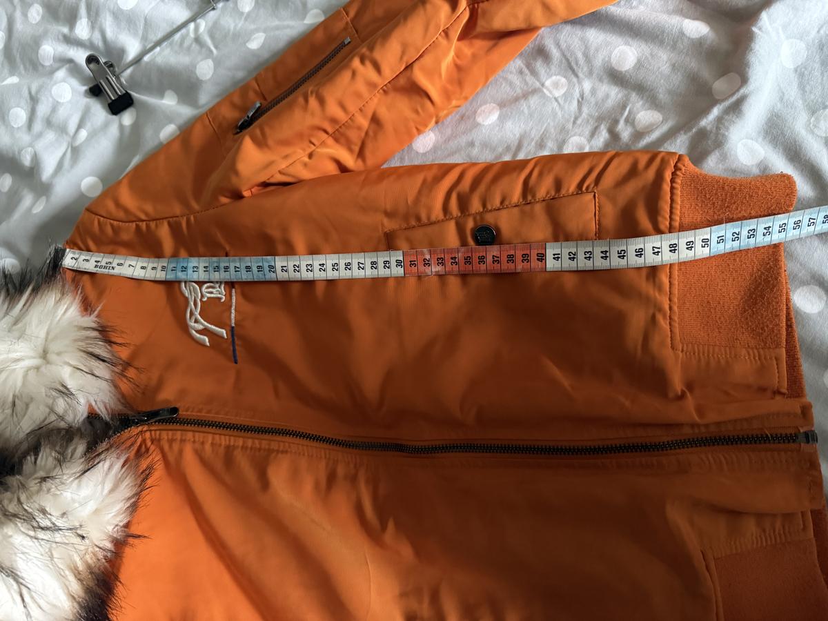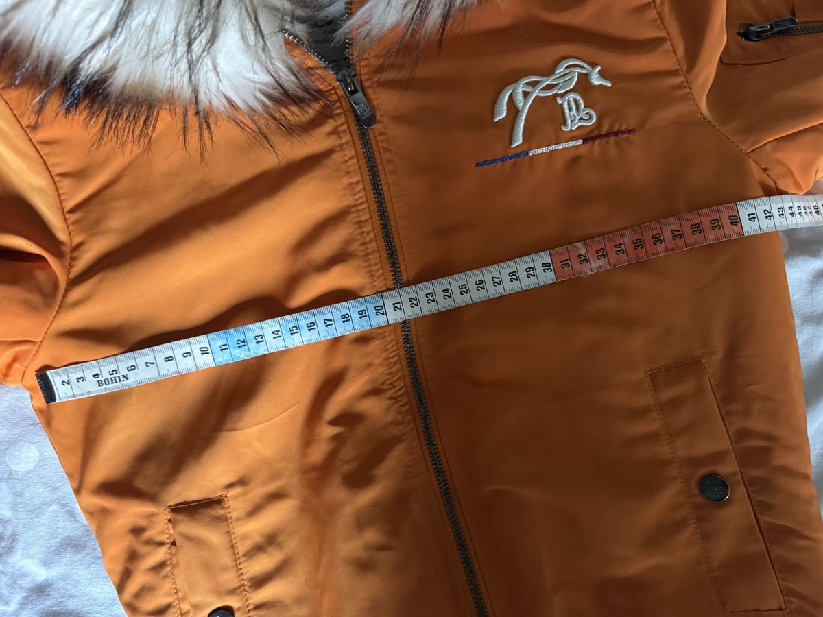 Bomber veste cheval poney équitation doudoune Lyon - orange beige crème capuche fourrure fausse moumoute Pénélope leprevost taille 14/16ans XS/S qu’elle que traces voir photos