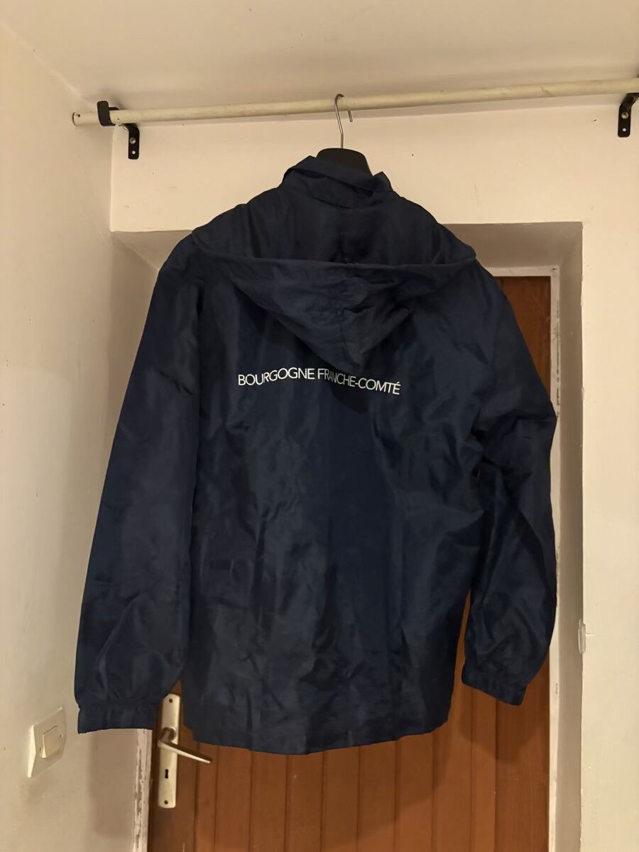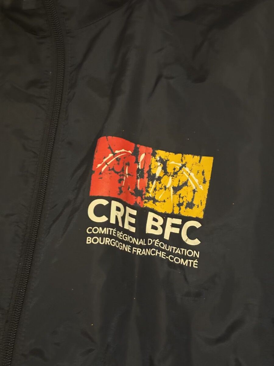 Imperméable CRE Bourgogne Franche-Comté taille M bleu marine avec les logos du CRE BFC.